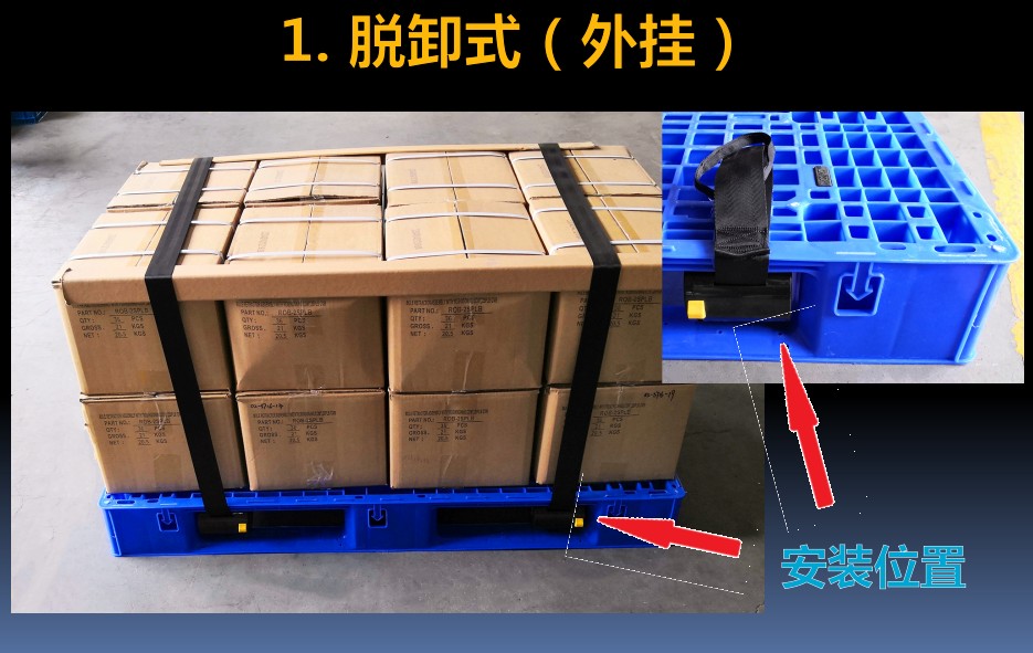 ● The binding strap can be automatically rolled after use, hidden inside the tray, not exposed, and will not affect storage and forklift use.