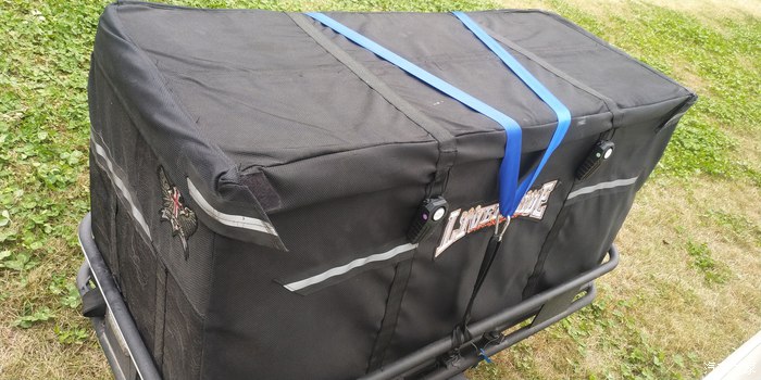 大途雖然商務車中的大塊頭,但人多遠行,還要住車上,對空間來說還捉襟見肘,如果加個帶輪的拖掛房車空間肯定沒話說,酷比了,什么停車費,上牌養車費加起來,很用的話,就浪費。有些國內帶輪的小拖車說整體重量超過700公斤合法允許上路的,但又花的銀子也不少,上路被交警攔住還要解釋,心情不好還要罰款,算了,還是不穩妥。  后來看到國外有種帶輪的拖車藍,錯,方便實用,及時換了車也可以用,占空間,繳費。放在家里煙臺或者花園里還可以當儲物柜,平時出行,直接快捷的安裝在車尾,但價格就貴得離譜,看看自己的荷包也就算了。至此就得了"心病",還得治。于在萬能的淘寶上尋到個國內的拖車藍,雖完美,但對得起這個價格,自己用擠塑板外加防水耐用布做了個箱體(看后圖)自己感覺還蠻漂亮的,輕巧防水耐磨,唯是不好固定在拖車藍上,買了幾種同的板扎帶固定,不是很方便,又麻煩,后來看到有種想安全帶自動伸縮的幫扎帶,美觀,實用,方便,唯怕牢固,前段時間還擔心,和以前的板扎帶起綁在拖車藍上,試跑了長途,中途就直接把以前的板扎帶給去了,發現這款像安全帶的幫扎帶非常牢固,助我春節跑海南。