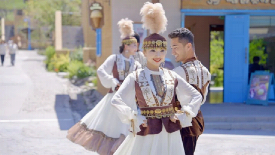 多姿多彩的互動體驗創造出滿足不同人群需求的優質商業空間,兼顧了旅游度假功能和商業消費功能。而場景式的輕型演藝形式則讓載歌載舞的畫面無處不在。區別于傳統的觀演,哈茵賽村的特色民俗演藝采取進行式表現手法,打造最具生活感、參與感的沉浸體驗。白天,在云水蔓延之間,樹下的阿德納豎琴悠揚而綿長,一群哈茵賽的幸福代言人翩然而至,邀請到訪的旅人走進哈因賽的幸福,游客可以伴隨著歌舞拜訪幸福村落,探尋寶藏小店,靜候牛羊牧歸;到了夜晚,則彈起冬不拉,在篝火塔旁盡情載歌載舞,體悟新疆民族文化博覽。除此之外,游客還可以觀賞到以草原文化生活為主題的無人機表演,天馬、天鵝、騎射、歌舞等特色元素點亮夜空,與新疆那拉提紫金音樂節遙相呼應,既豐富了游客體驗,也提升了景區知名度。