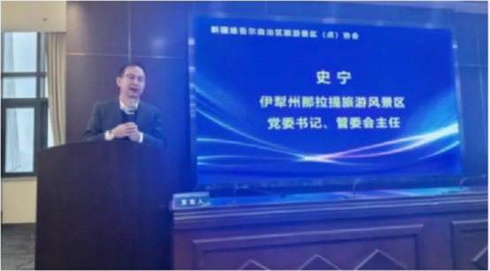 2024年11月23日,在自治區文旅廳和民政廳的指導下,新疆維吾爾自治區旅游景區(點)協會第六屆會員換屆大會在新疆旅游大廈圓滿舉行,成功選舉出1家會長單位、12家常務理事單位、44家理事單位及3家監事單位,其中,伊犁州那拉提旅游風景區黨委書記、管委會主任史寧當選為新疆維吾爾自治區旅游景區(點)協會第六屆會長。