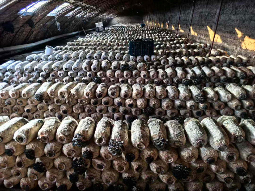 “今年我們培育了五六萬個蘑菇菌包,眼下這個大棚的蘑菇一月就能采收完畢,另一個大棚的產量則會趕在春節前上市??恐@五個大棚,我們實現了蘑菇的全年不間斷供應。”明樹和補充道。