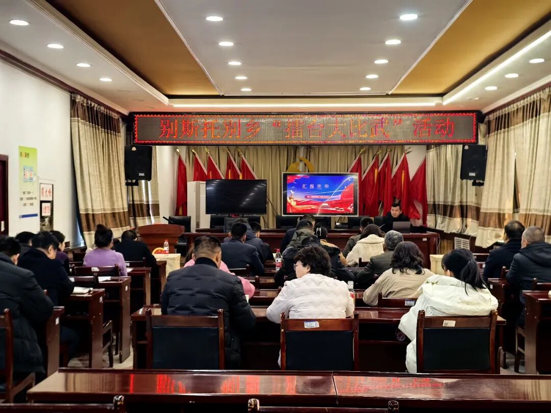 在別斯托別鄉“擂臺大比武”活動中。各村駐村第一書記、黨支部書記、村委會主任同臺競技、亮績曬優,以“比”促學、以“賽”提能,上演了一場精彩紛呈的基層工作“實績秀”。