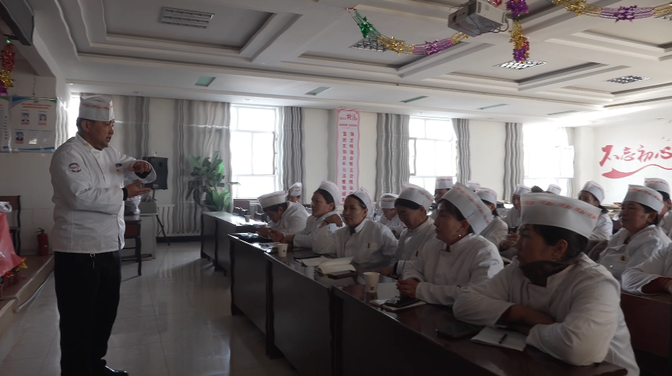 在則克臺鎮則克臺村的培訓教室內,烹飪培訓課正火熱開展。專業培訓機構老師先系統講解食材挑選、營養搭配、火候掌控等理論知識,隨后進入實操環節——從基礎刀工技法演示,到手把手指導食材切配、下鍋翻炒、調味,逐步傳授家常菜肴與特色美食制作技藝。學員們圍聚操作臺前,認真觀摩記錄,在老師指導下親自上手練習,現場香氣四溢,學習氛圍十分濃厚。