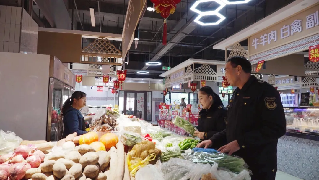 近日,記者跟隨新源縣市場監督管理局的執法人員,先后走訪了縣城內多家大型農貿市場和連鎖超市?,F場看到,蔬菜、水果、肉類、糧油、糖果、禮品等年貨品類豐富,供應充足。前來購置年貨的居民人頭攢動,購物熱情高漲,市場呈現出一派繁榮熱鬧的節日景象。