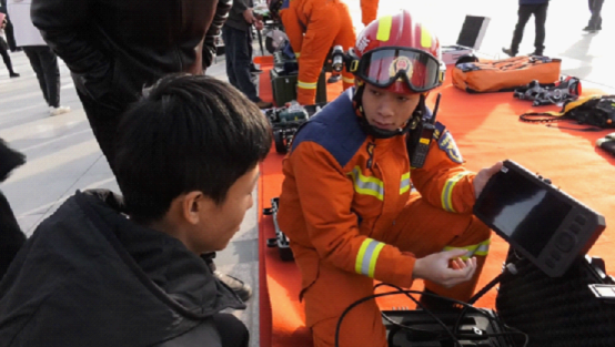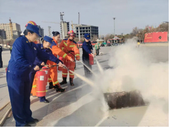 儀式結束后,現場互動體驗區氣氛熱烈。云梯消防車、搶險救援車等專業裝備整齊排列,消防員細致講解裝備功能并演示破拆工具使用;在消防員手把手指導下,群眾輪流操作滅火器撲救火堆,學習干粉滅火器使用方法。活動還發放消防安全指南手冊,宣講員耐心解答冬季取暖安全、燃氣使用規范等疑問,戶外大屏同步播放轄區典型火災案例警示片,強化群眾安全意識。