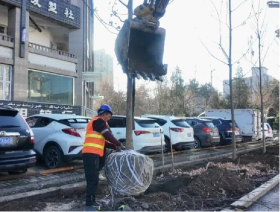 在新源縣青年街路段施工現場,一派繁忙有序景象。工人們分工協作、有條不紊,專注開展綠化帶苗木移栽作業,為道路“煥新添綠”按下快進鍵。