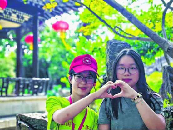 參加“蘇韻伊情·揚(yáng)新同行”小石榴籽夏令營活動(dòng)的艾迪娜·周木灑(左)和“書信朋友”沈希媛在揚(yáng)州相見(7月21日攝)。□圖片由揚(yáng)州工作組提供