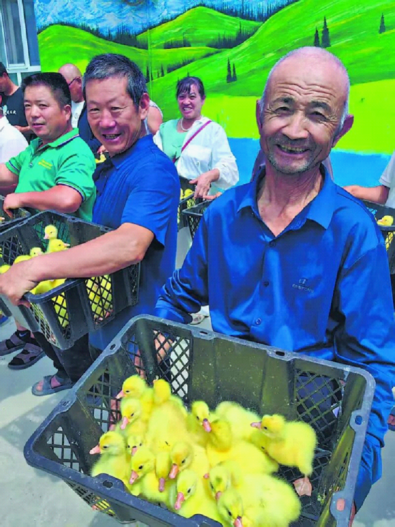 在新源縣喀拉布拉鎮(zhèn),揚(yáng)州援疆三花鵝林下養(yǎng)殖推廣援助項(xiàng)目鵝苗發(fā)放現(xiàn)場(chǎng)熱鬧非凡,50名農(nóng)牧民免費(fèi)領(lǐng)取近萬只三花鵝苗(7月8日攝)。□圖片由揚(yáng)州工作組提供