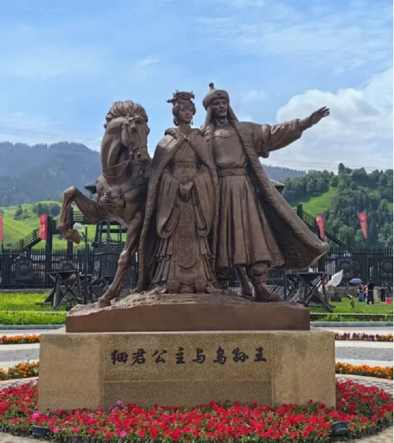 投入500萬元的細(xì)君公主廣場(chǎng)在那拉提景區(qū)建成開放(7月5日攝)。□圖片由揚(yáng)州工作組提供
