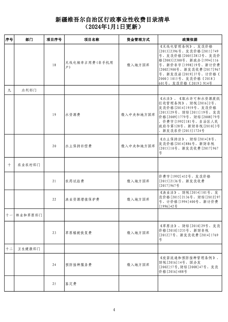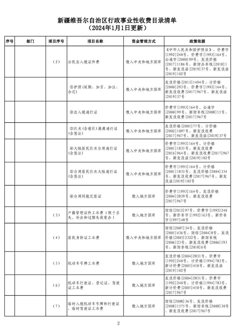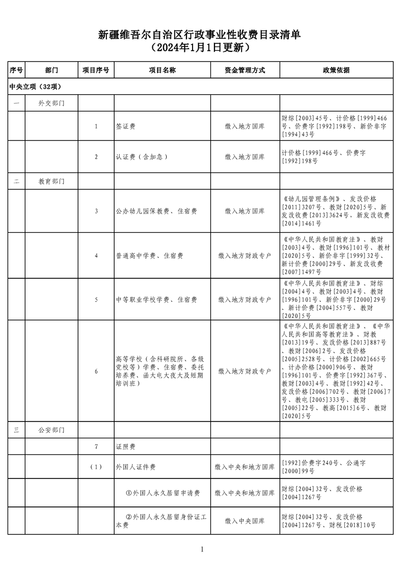 新疆維吾爾自治區行政事業性收費目錄清單(2024年1月1日更新)