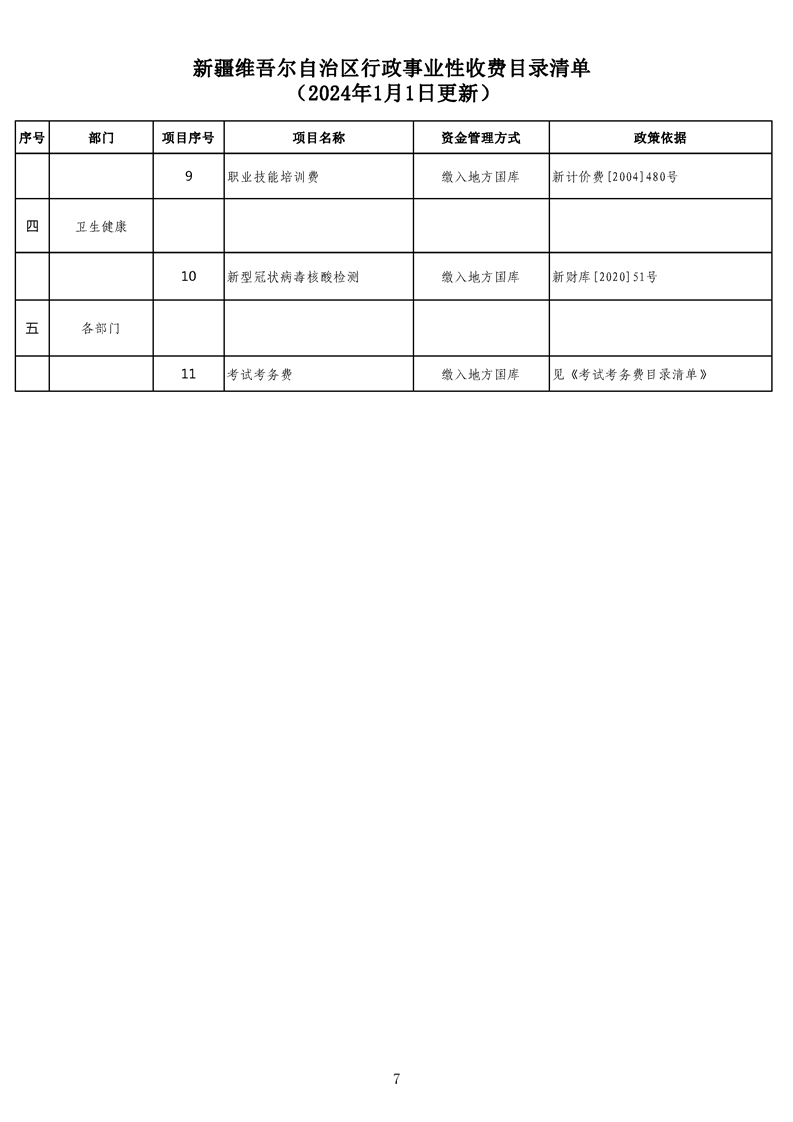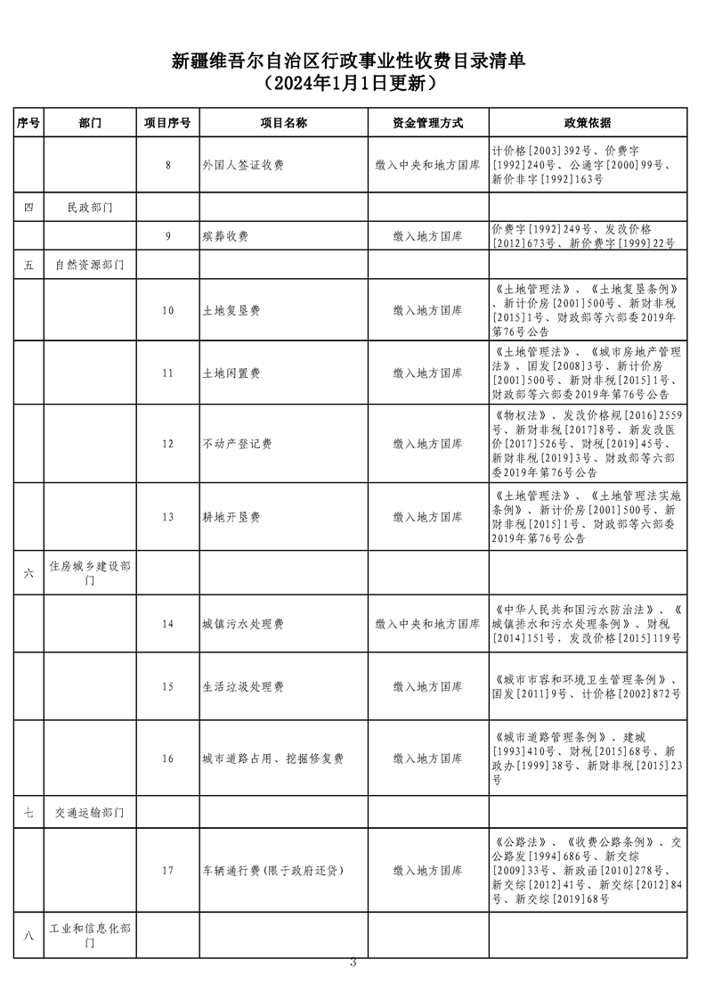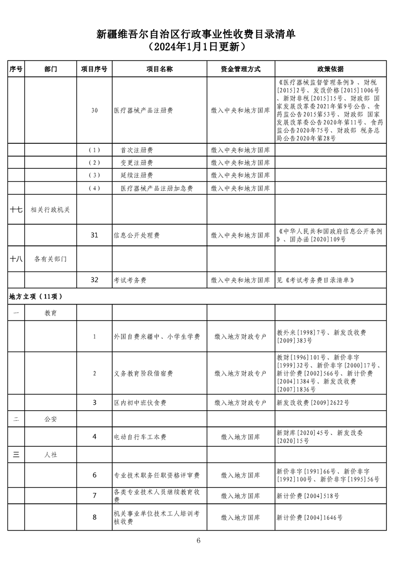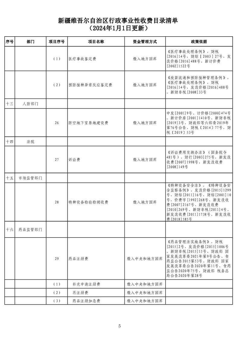 新疆維吾爾自治區行政事業性收費目錄清單(2024年1月1日更新)