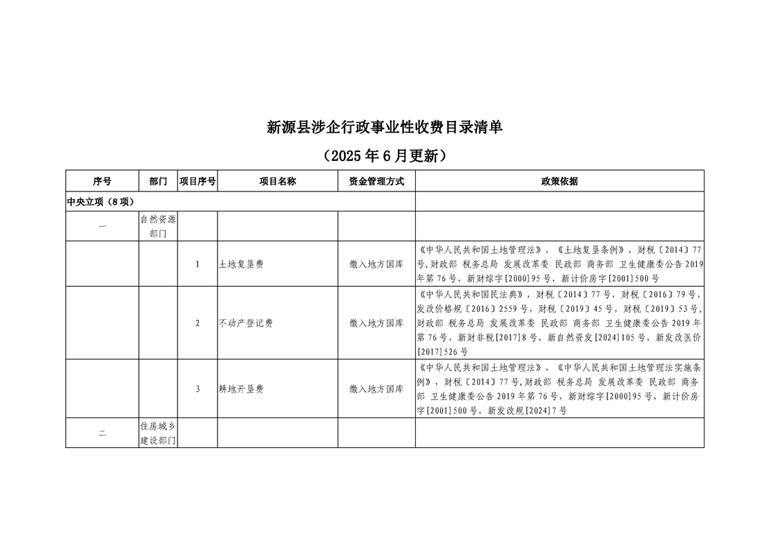 新源縣涉企行政事業性收費目錄清單(2025年6月更新)