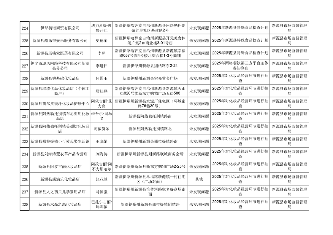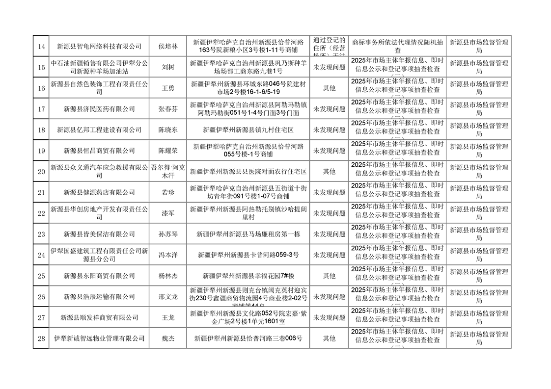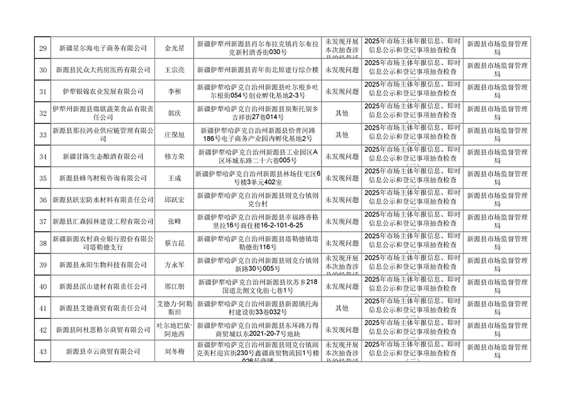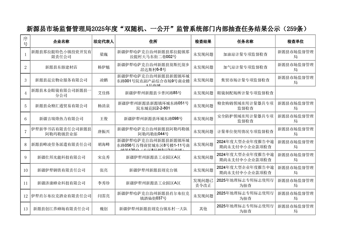 新源縣市場監(jiān)督管理局2025年度“雙隨機(jī)、一公開”監(jiān)管系統(tǒng)部門內(nèi)部抽查任務(wù)結(jié)果公示