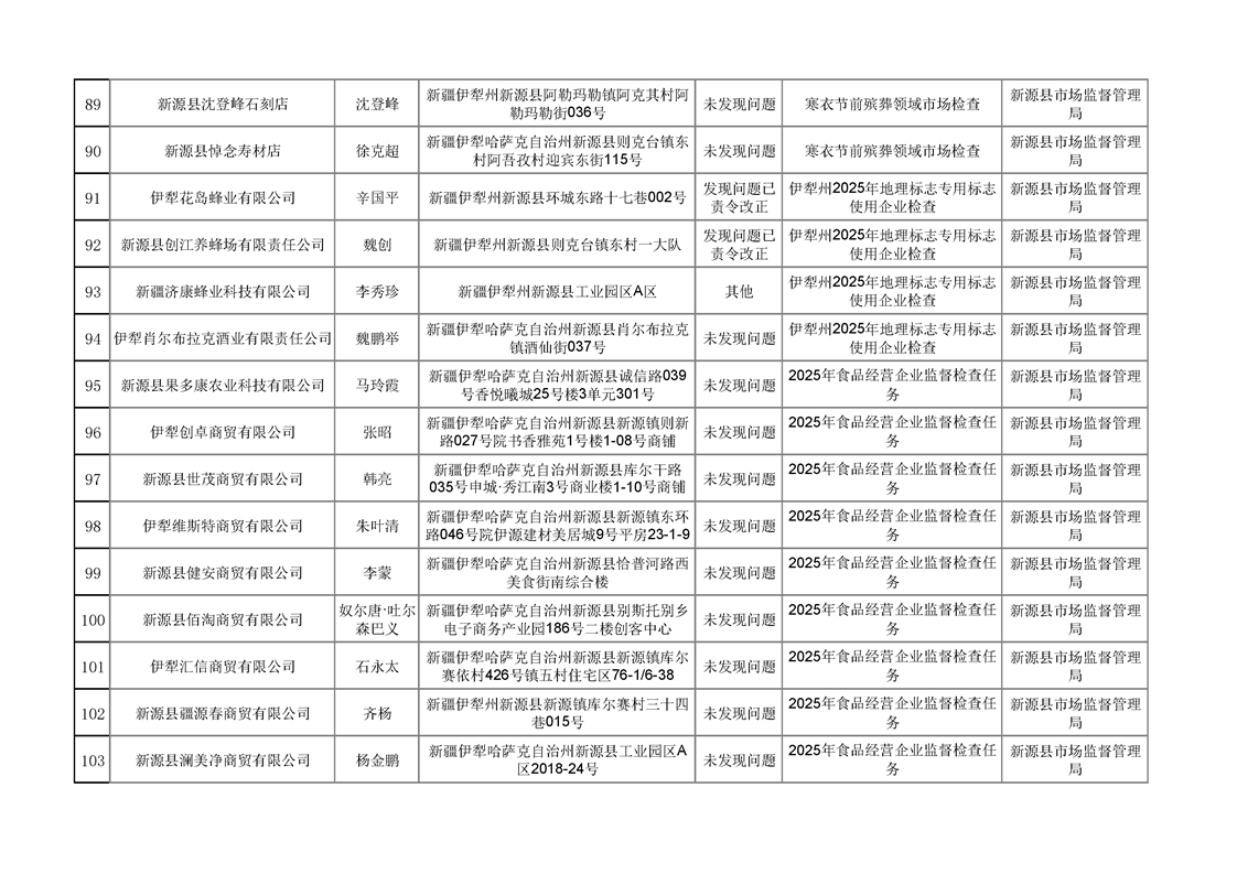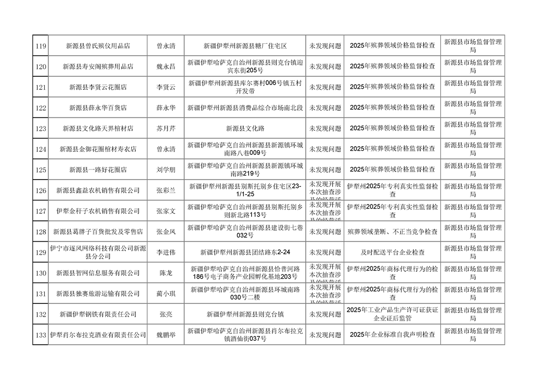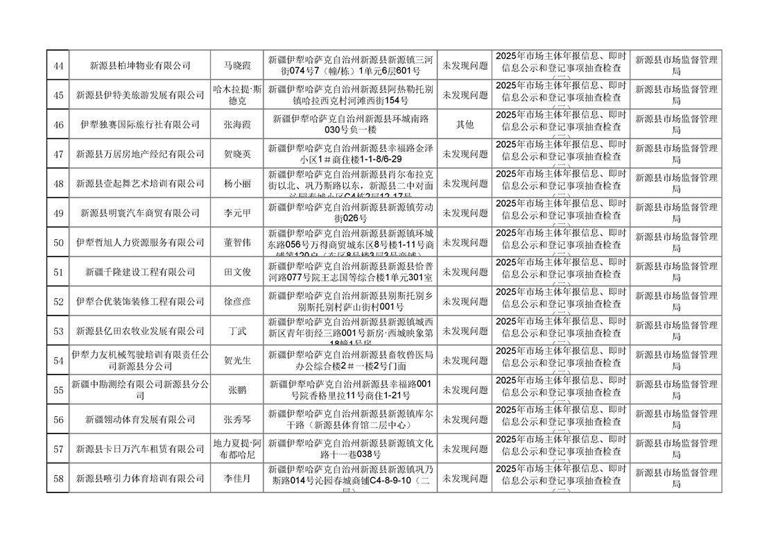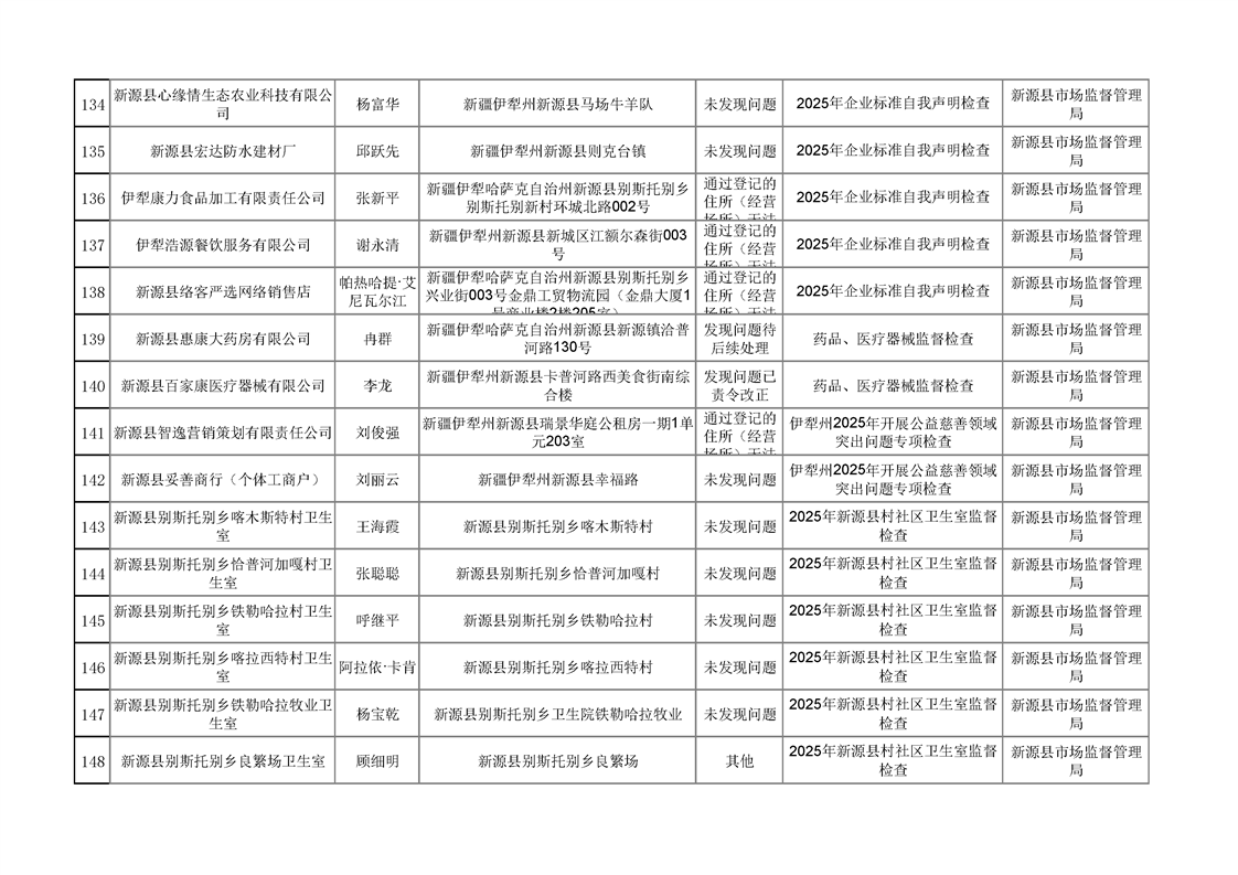新源縣市場監(jiān)督管理局2025年度“雙隨機(jī)、一公開”監(jiān)管系統(tǒng)部門內(nèi)部抽查任務(wù)結(jié)果公示