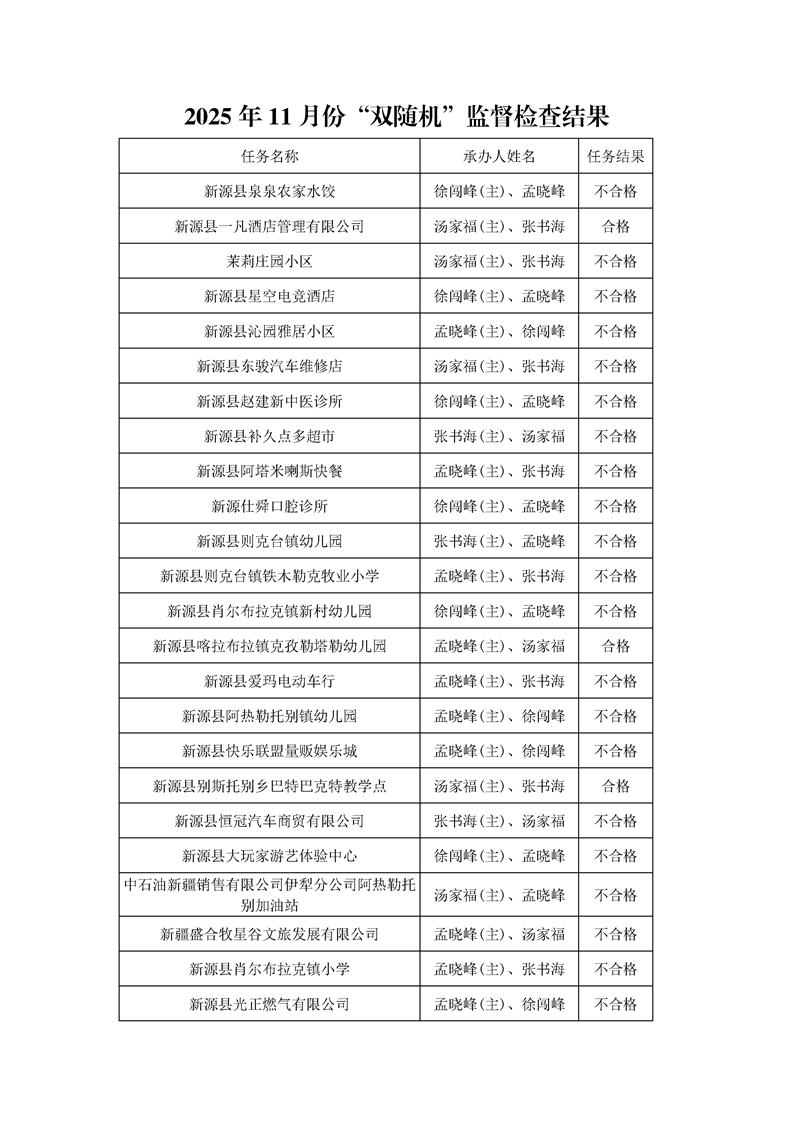 新源縣消防救援大隊(duì)2025年11月份“雙隨機(jī)”檢查結(jié)果及12月份“雙隨機(jī)”抽查計(jì)劃