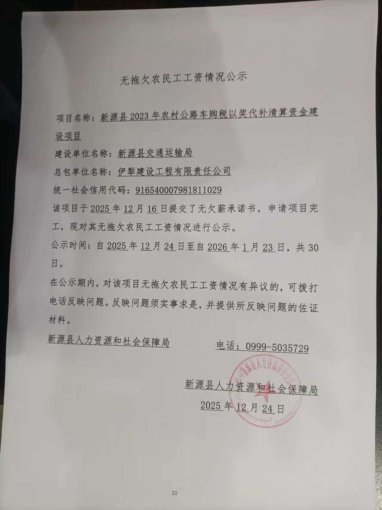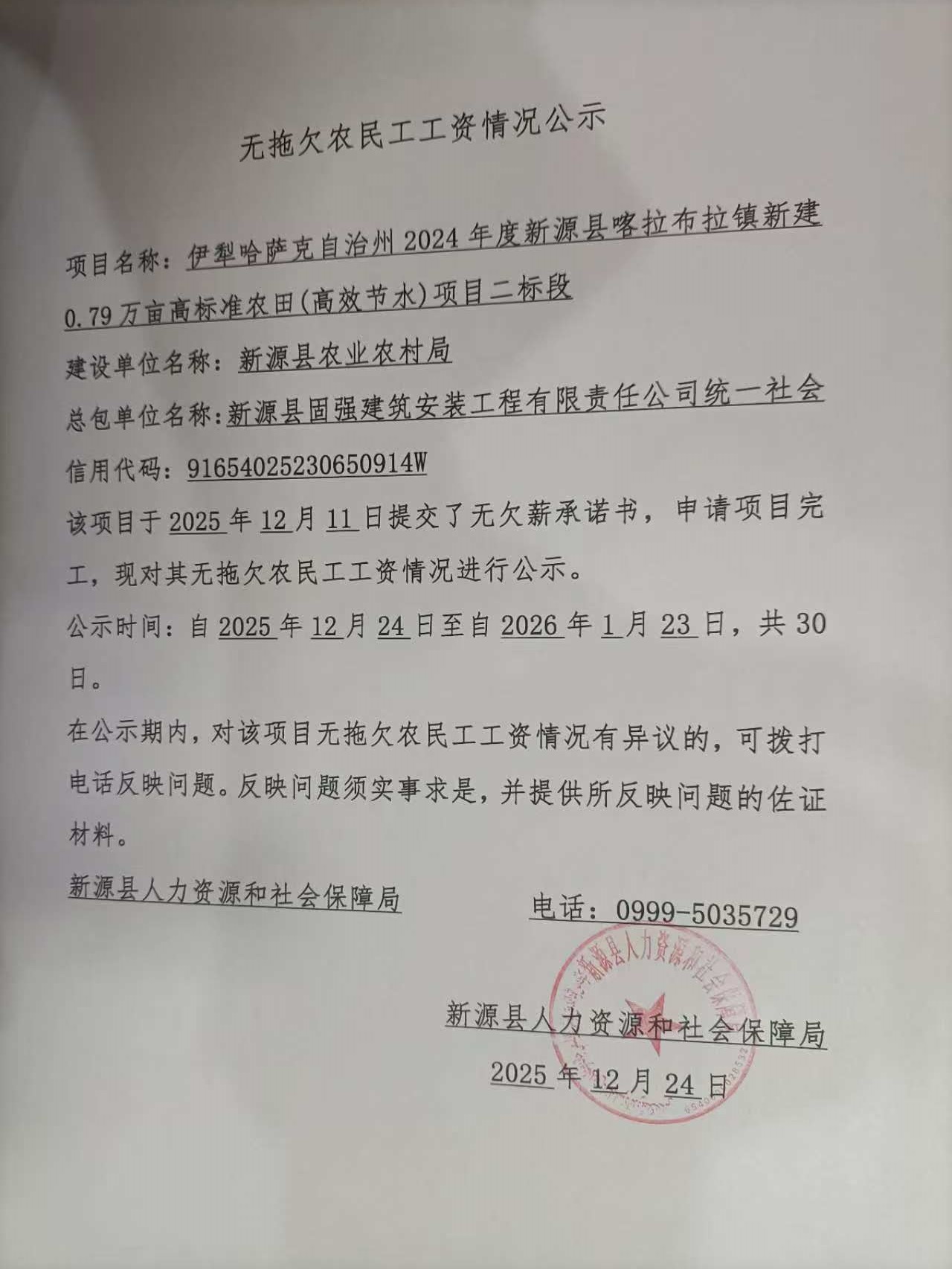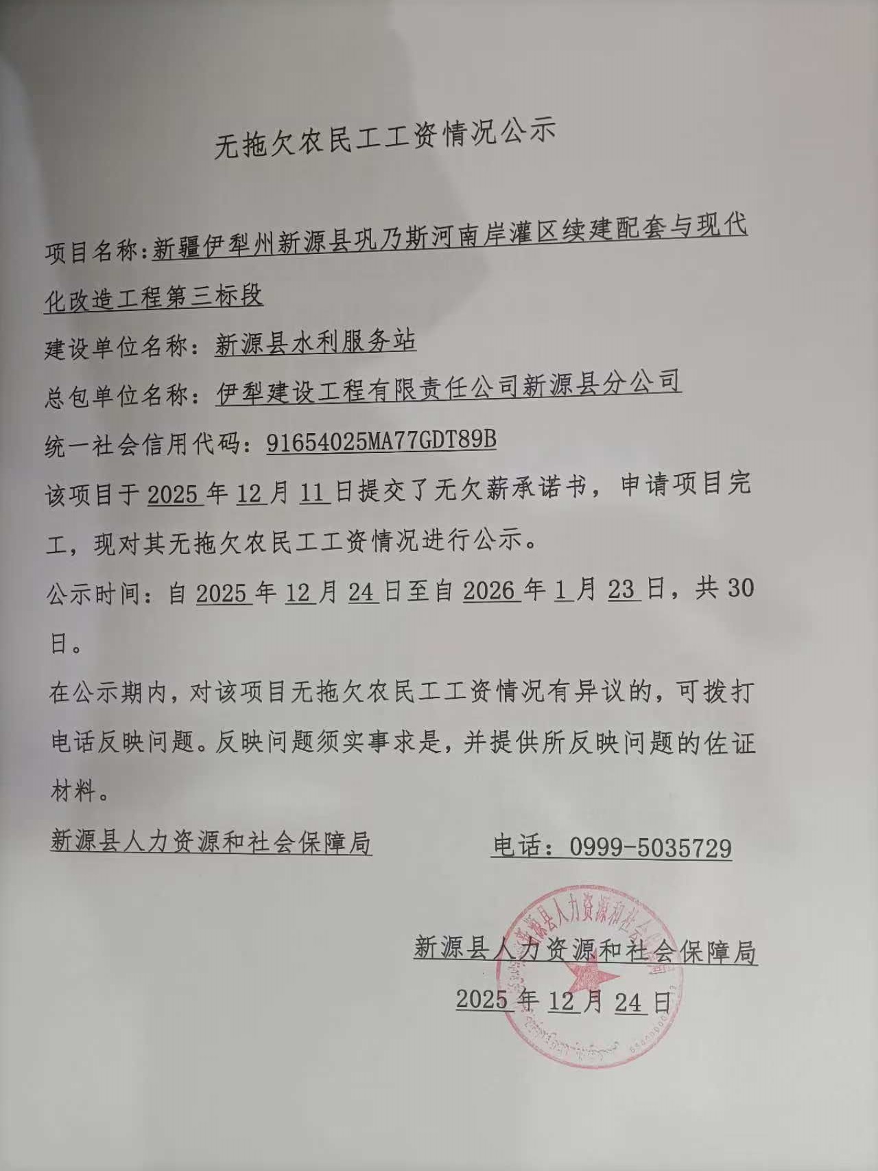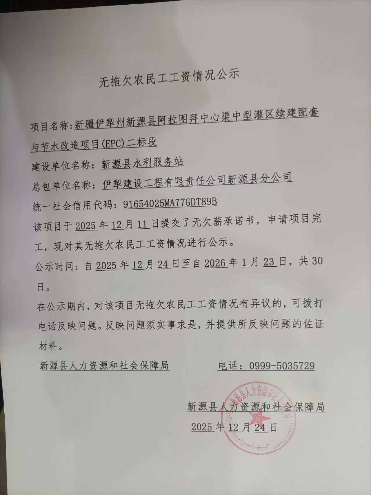 無拖欠農民工工資情況公示