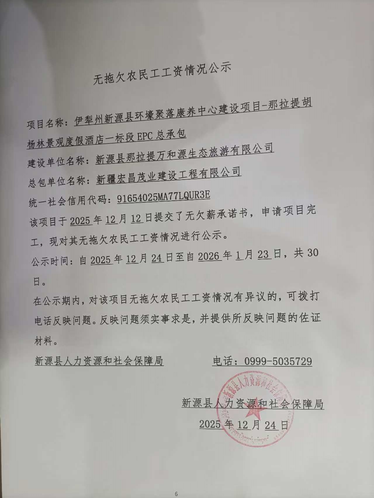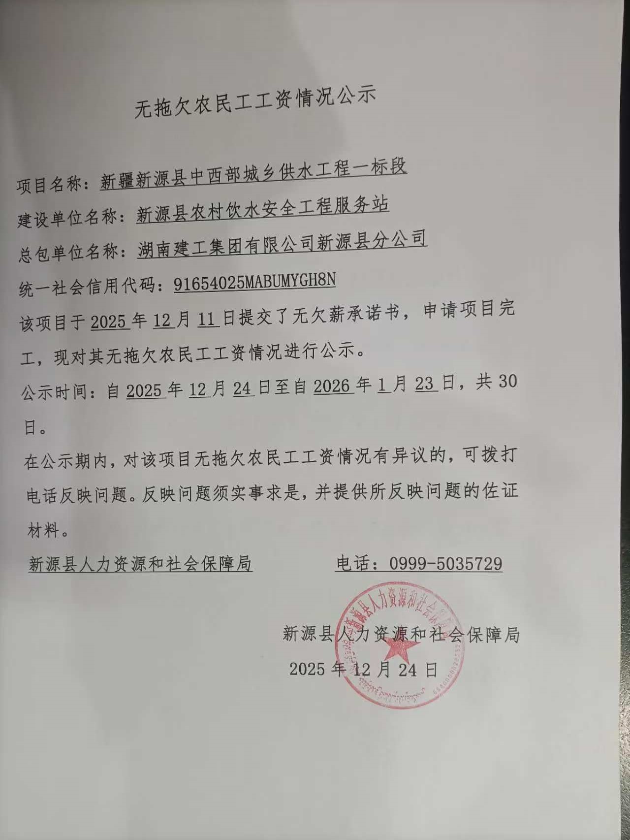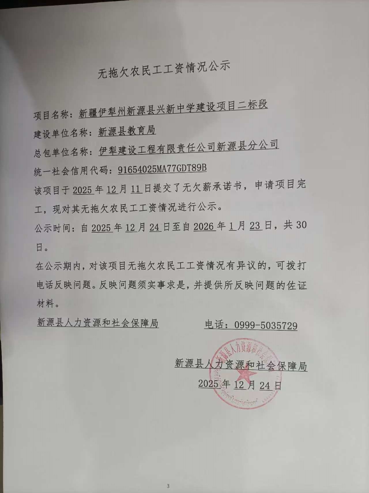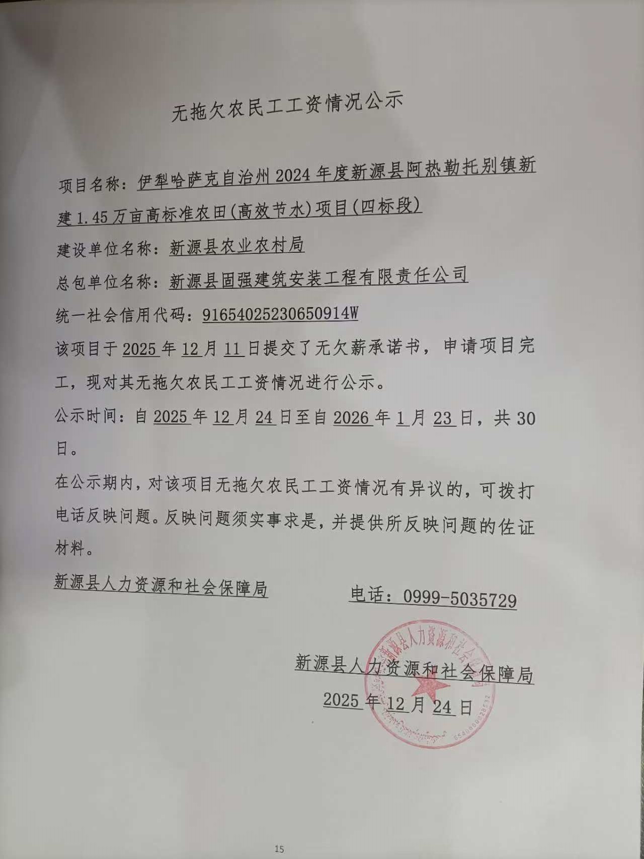 無拖欠農民工工資情況公示