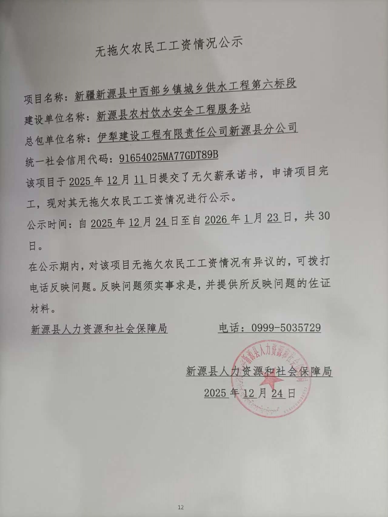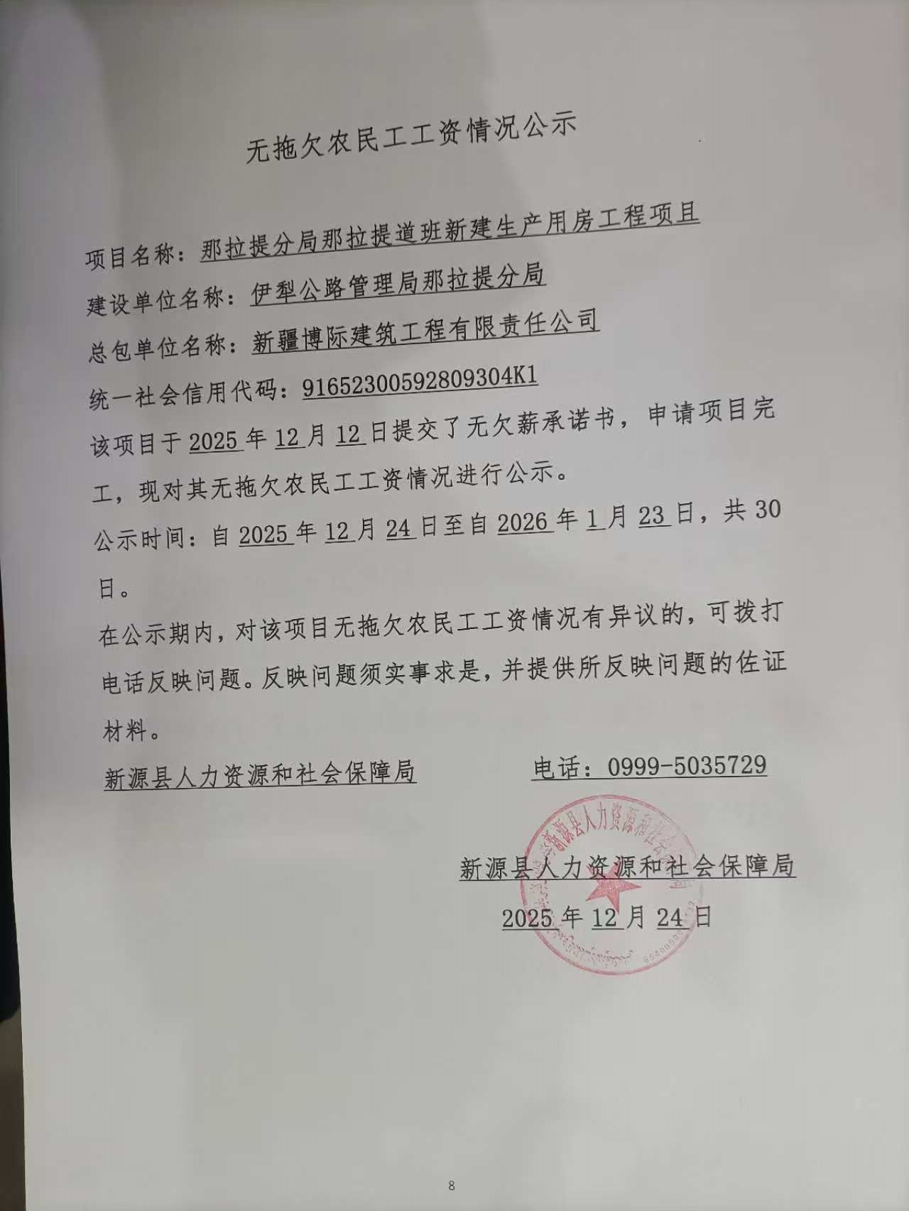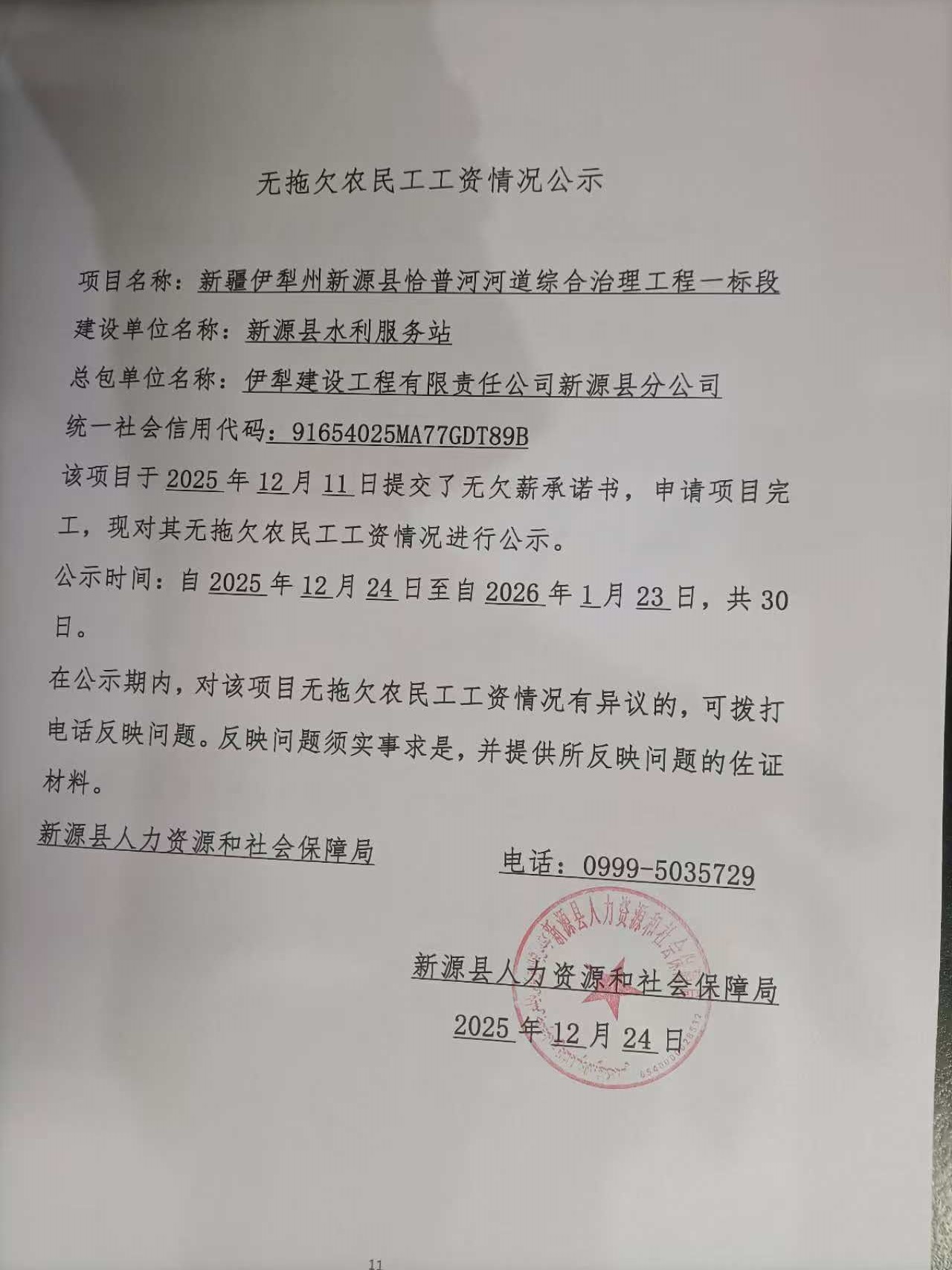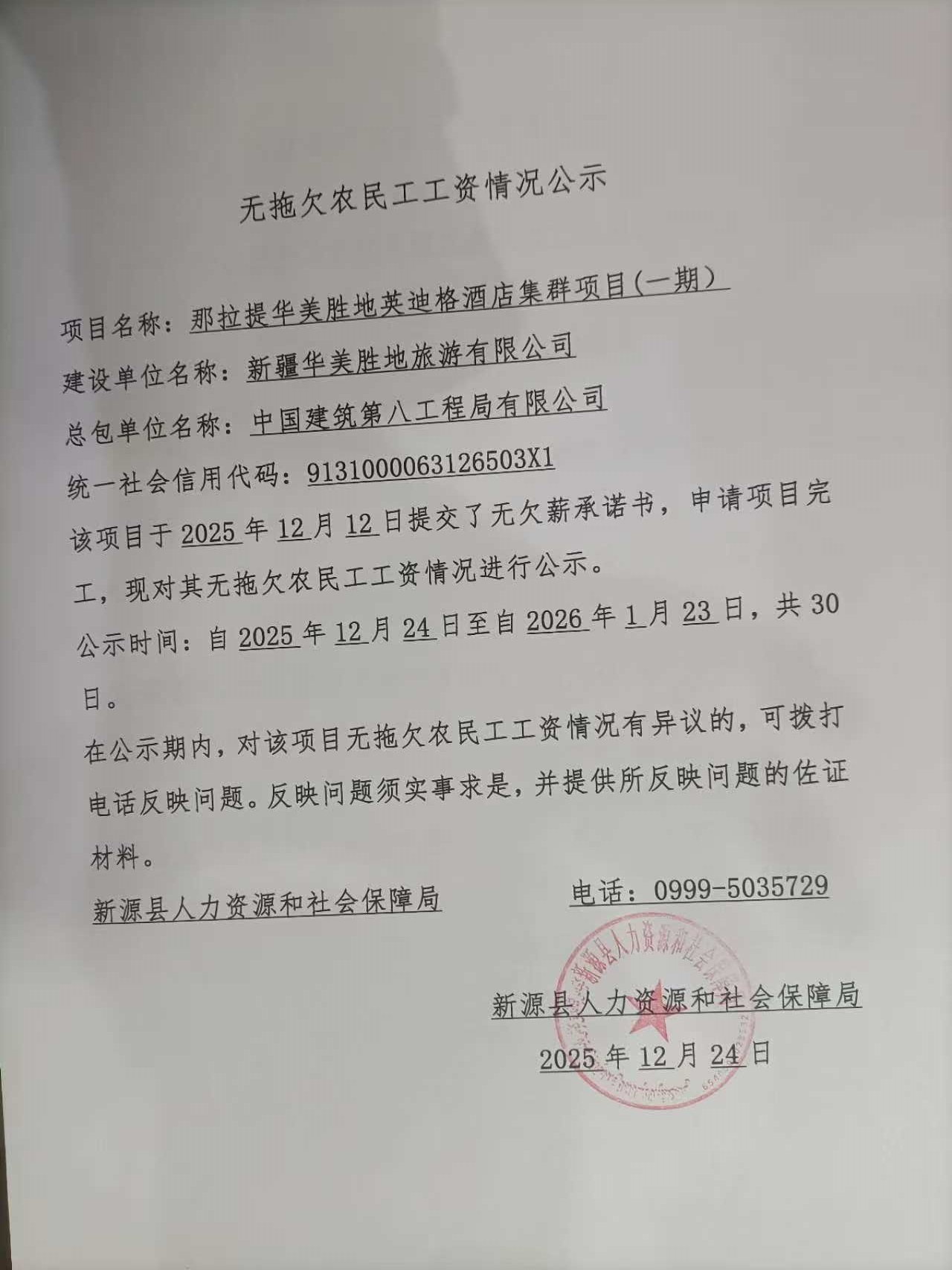 無拖欠農民工工資情況公示