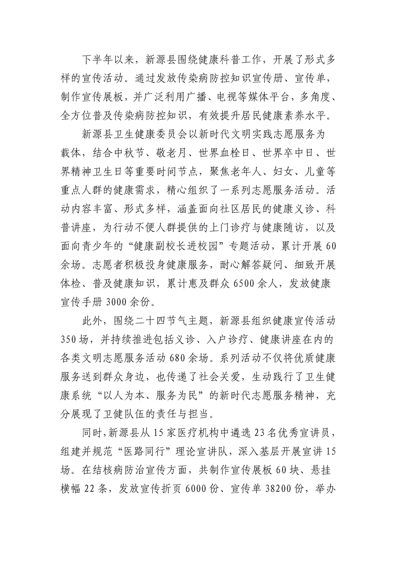 新源縣下半年健康科普工作開展情況
