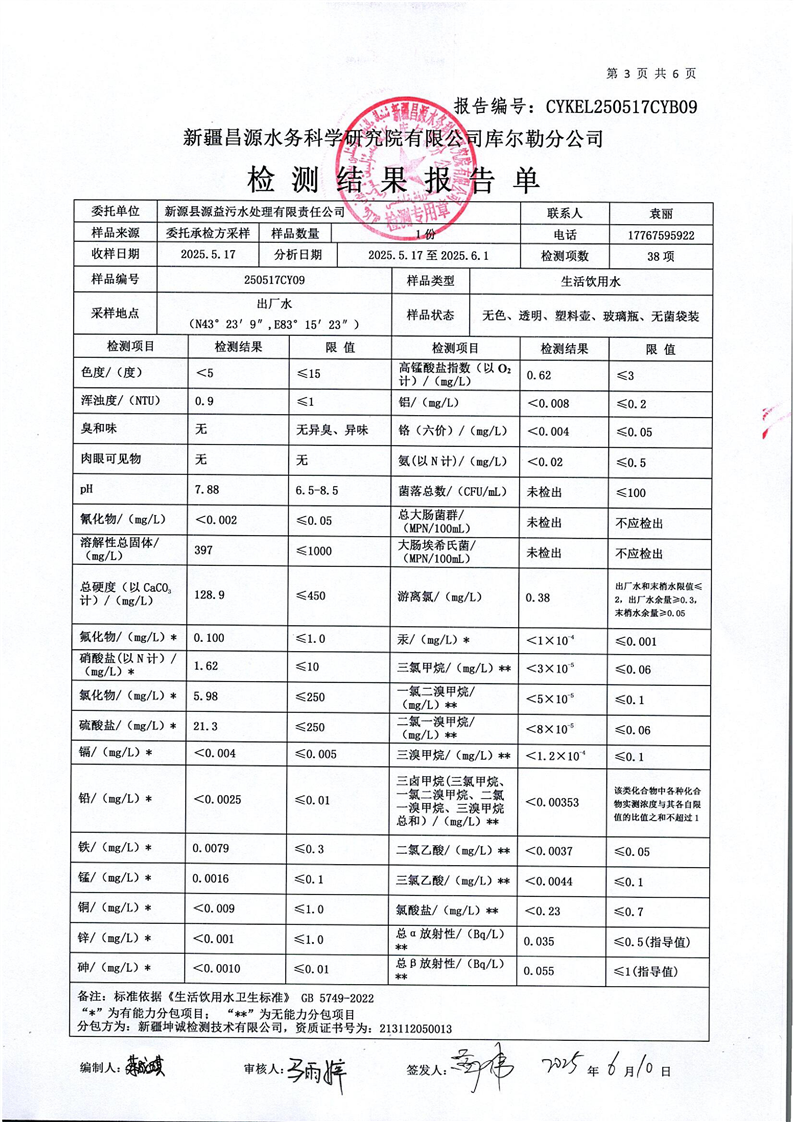 2025年5月水質(zhì)檢測報告