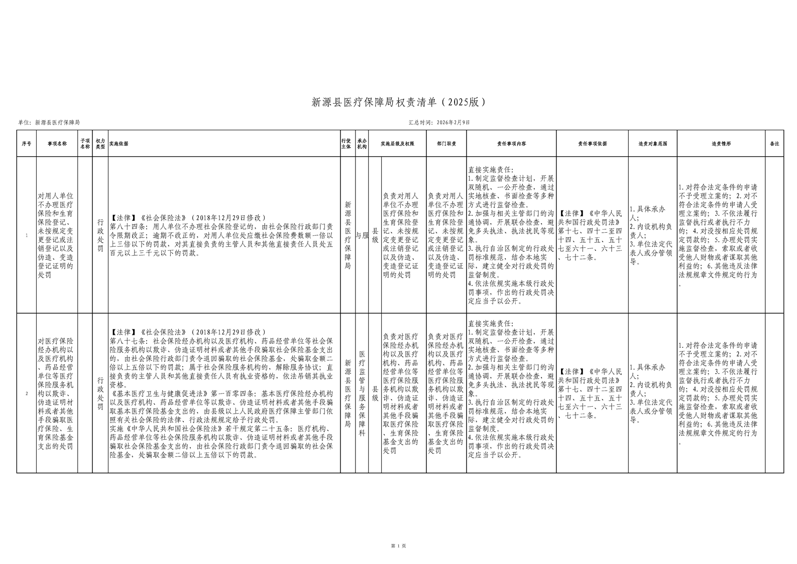 新源縣醫(yī)療保障局權(quán)責(zé)清單(2025版)