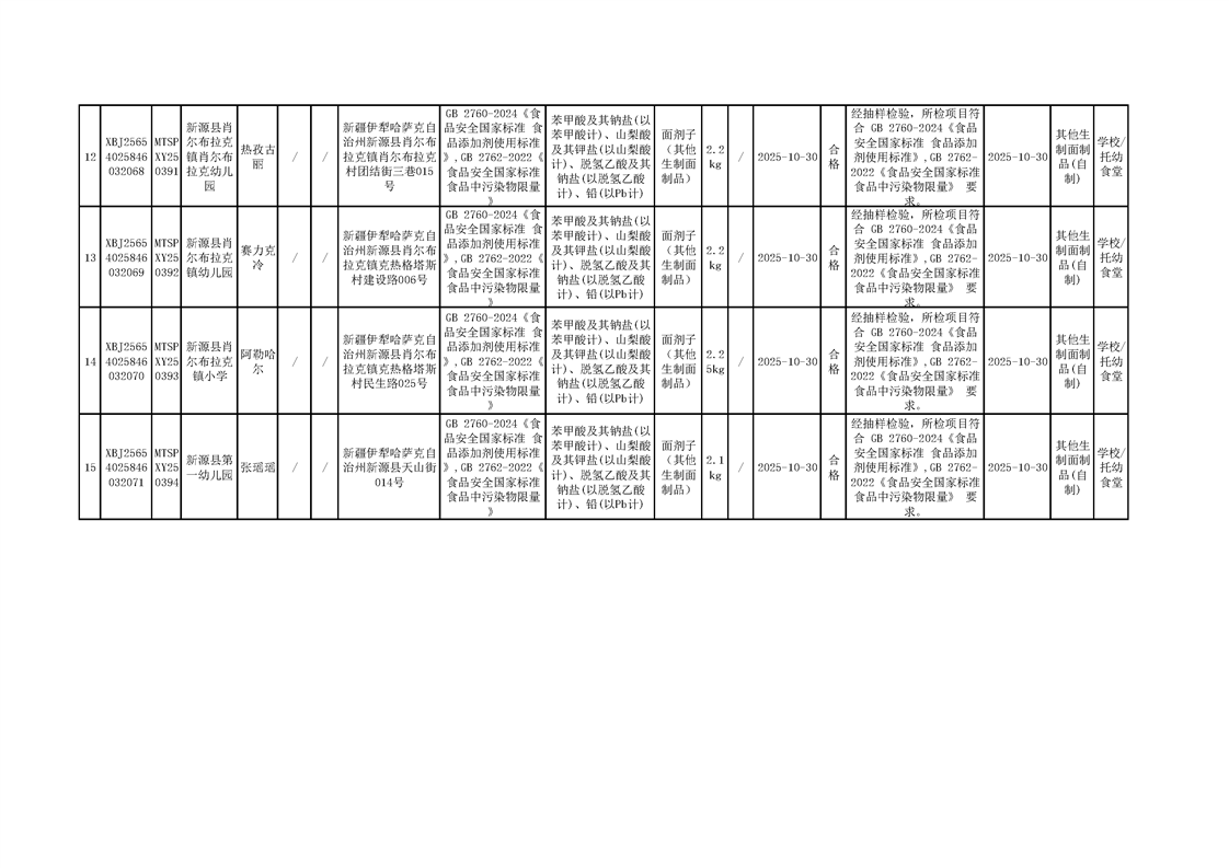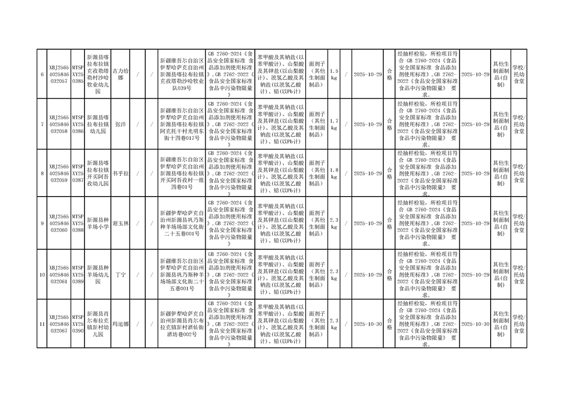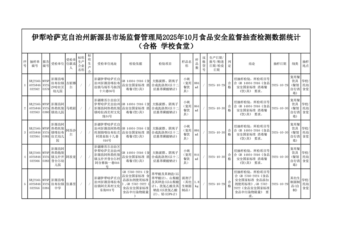 伊犁哈薩克自治州新源縣市場監督管理局2025年10月食品安全監督抽查檢測數據統計(合格 學校食堂)