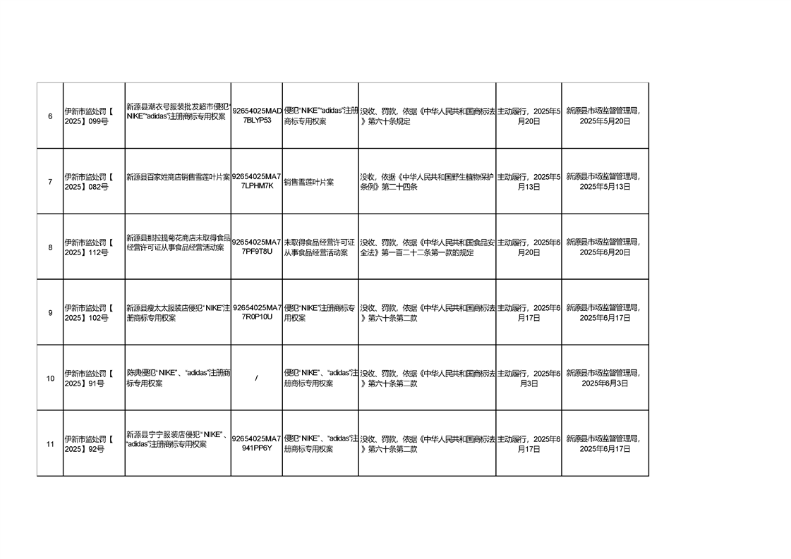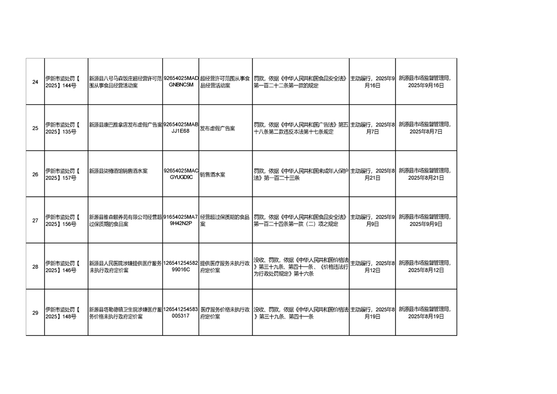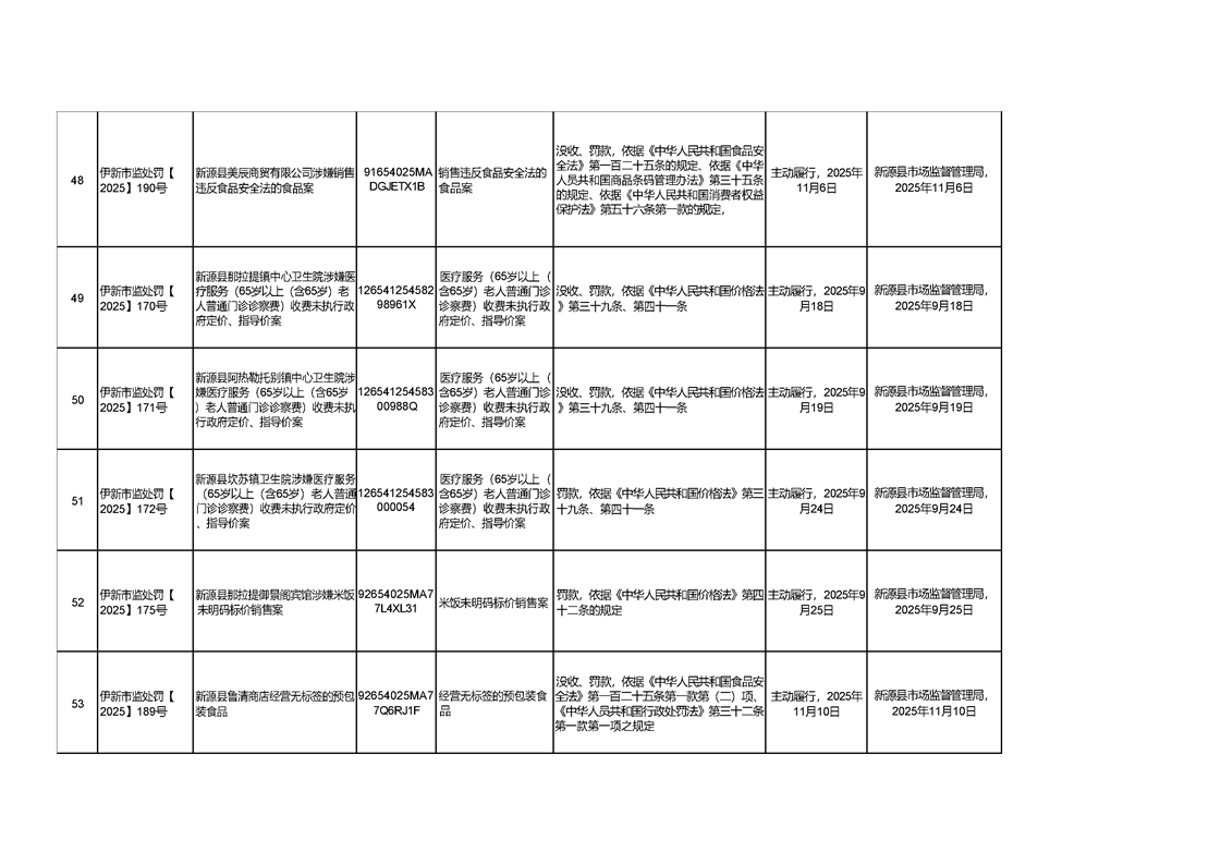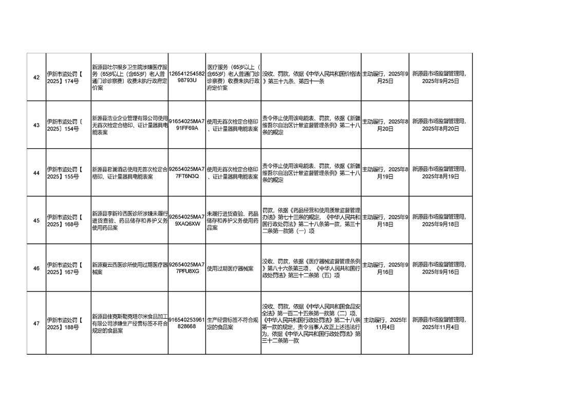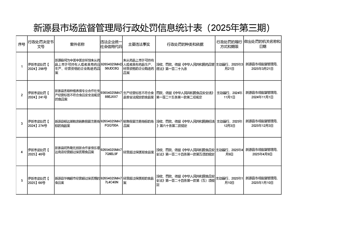 新源縣市場監督管理局行政處罰信息統計表(2025年第三期)