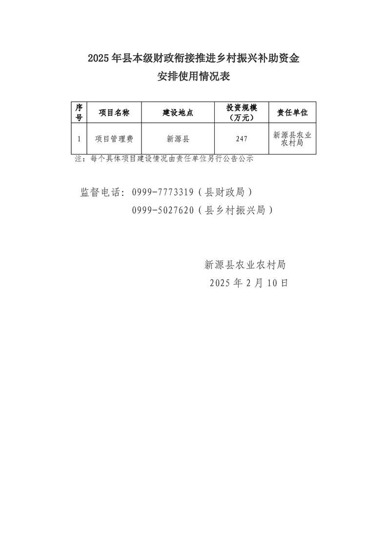 新源縣關于2025年縣級財政銜接推進鄉村振興補助資金安排使用情況公告公示
