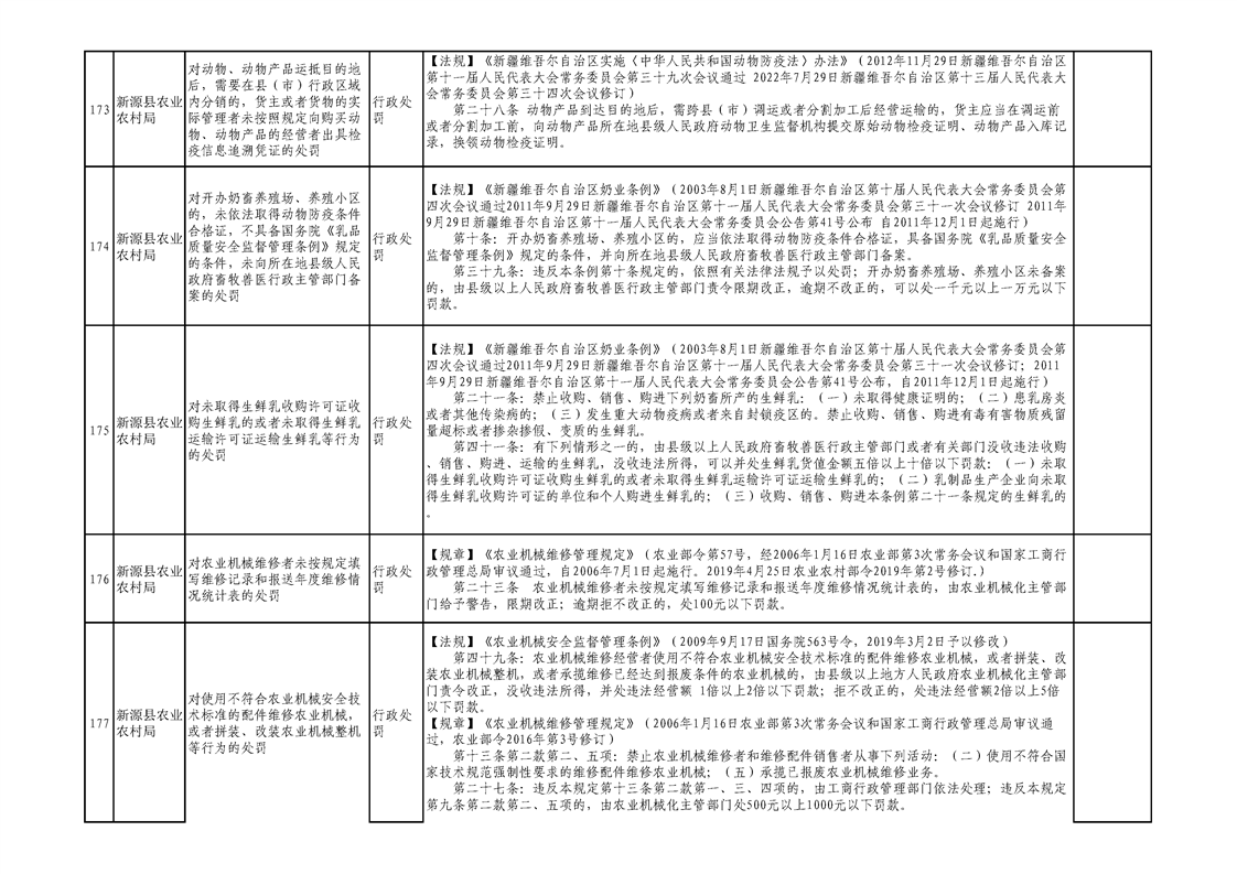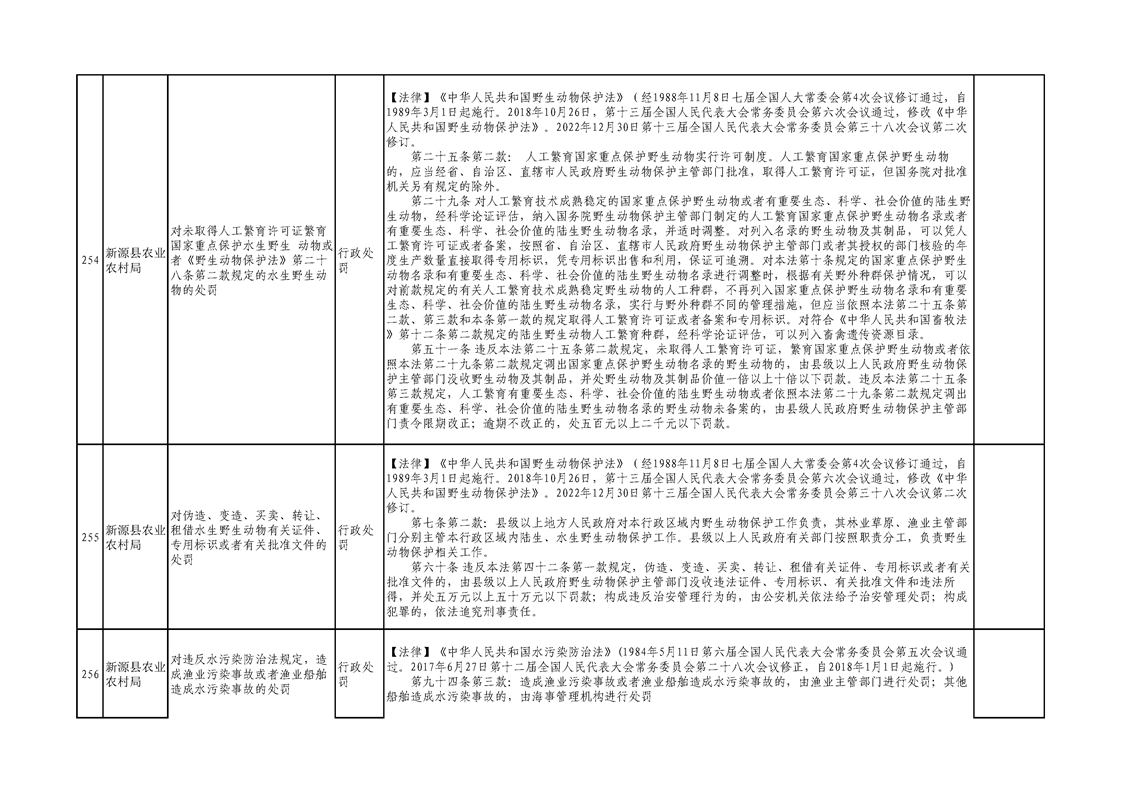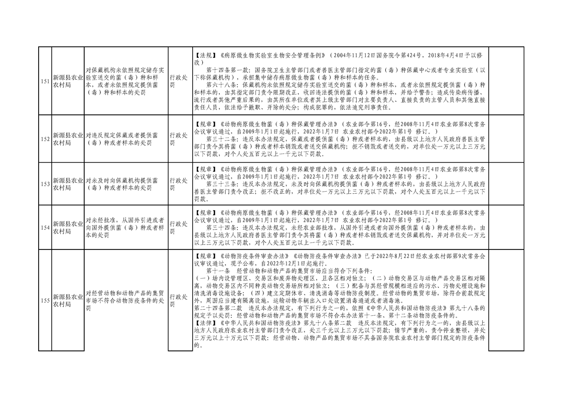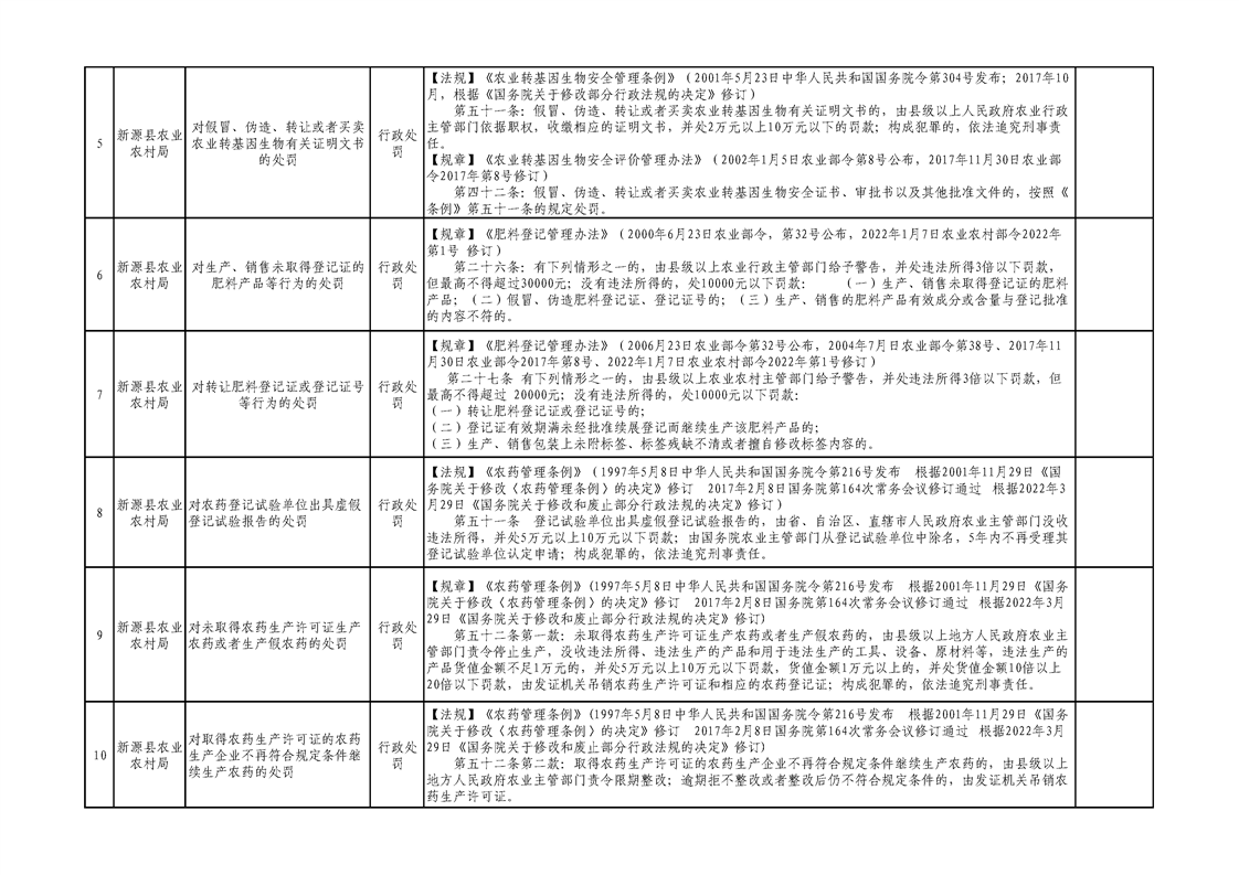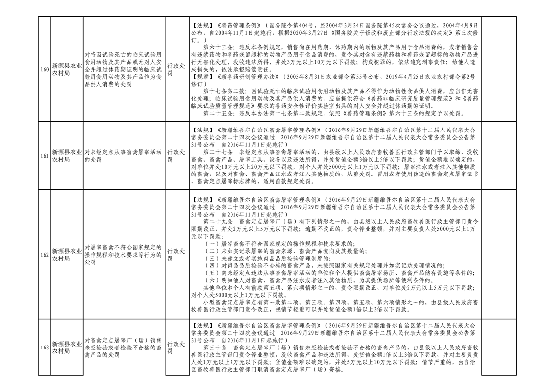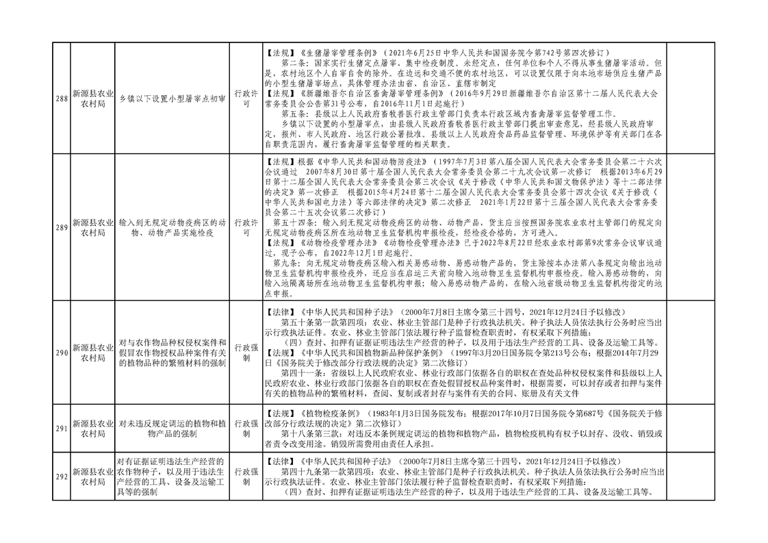 新源縣農業農村局行政執法事項清單