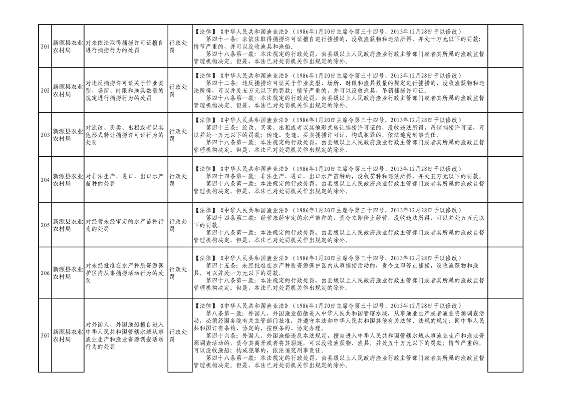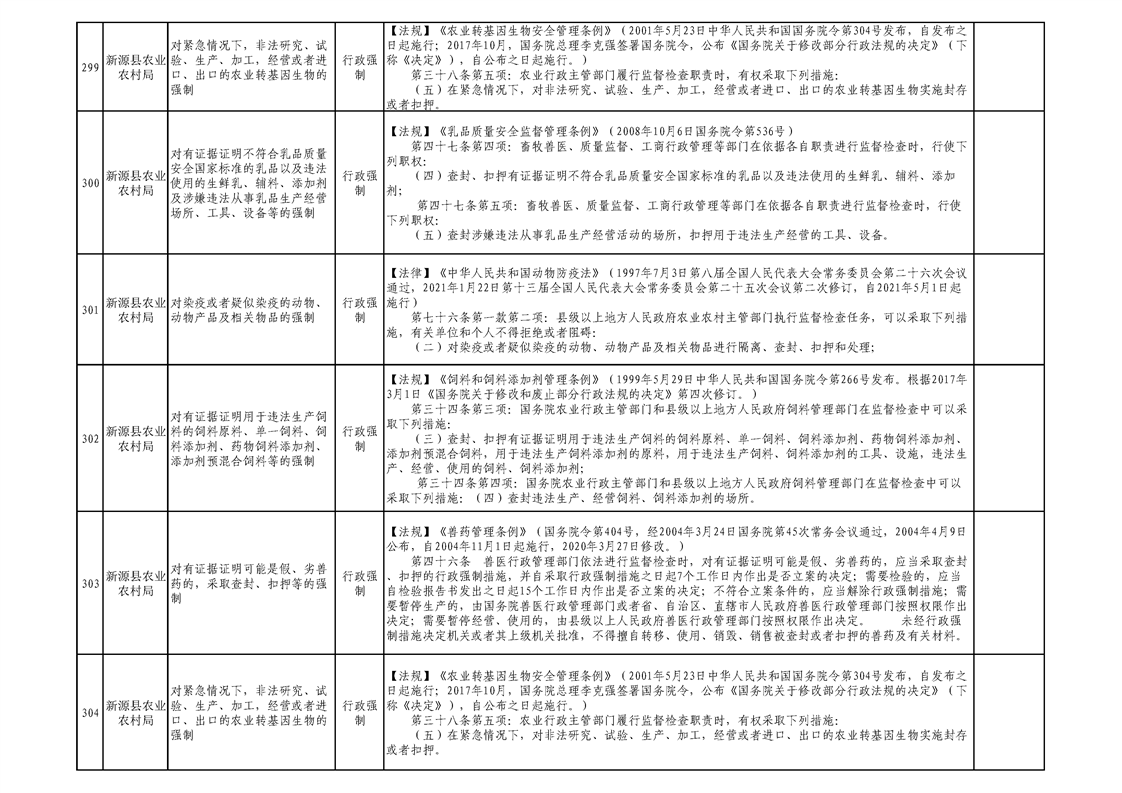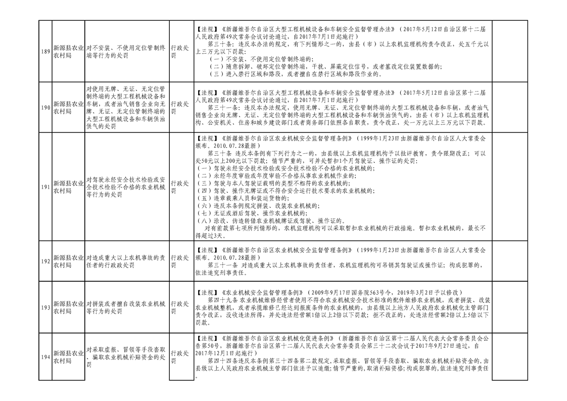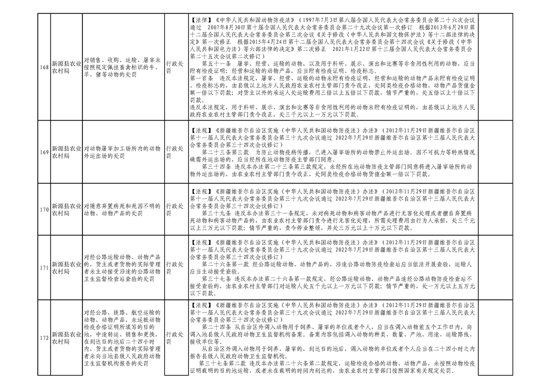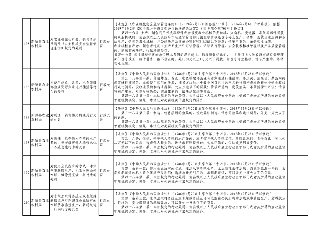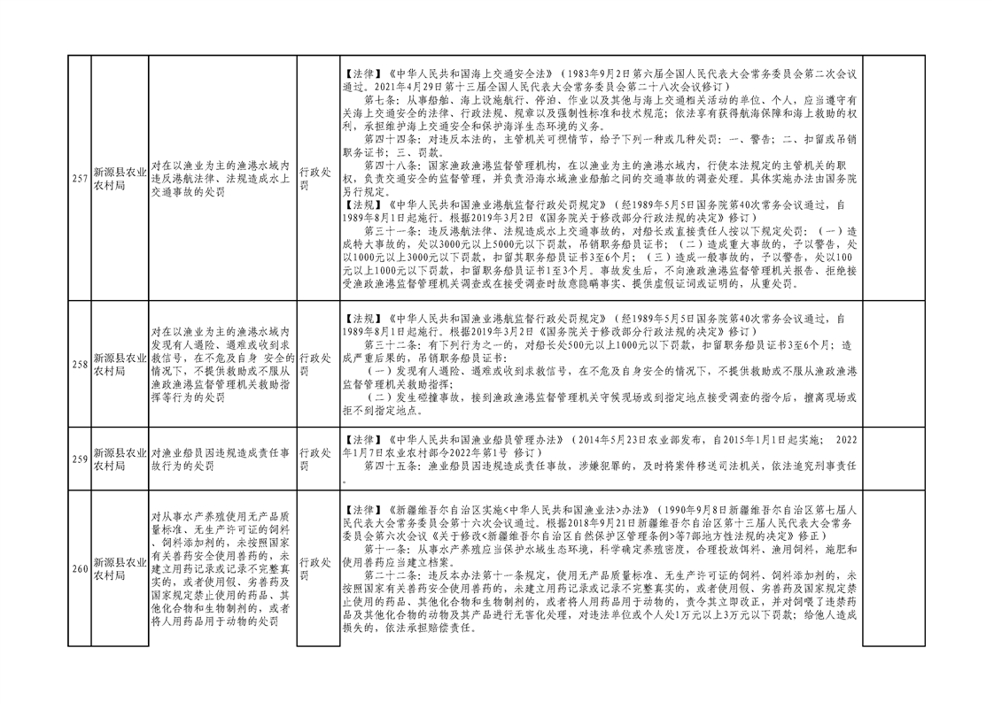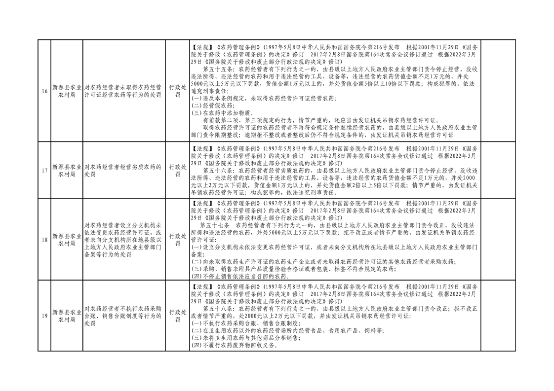 新源縣農業農村局行政執法事項清單