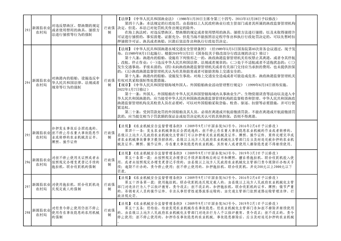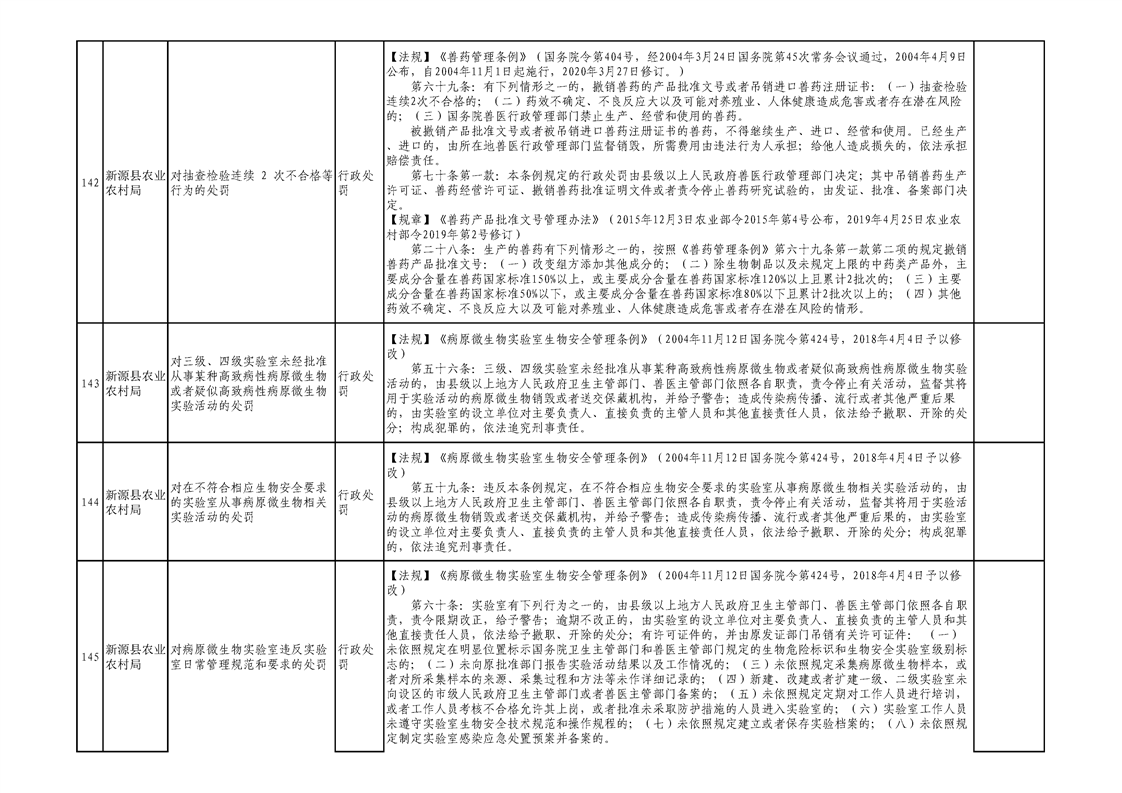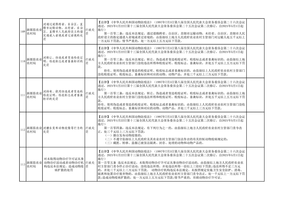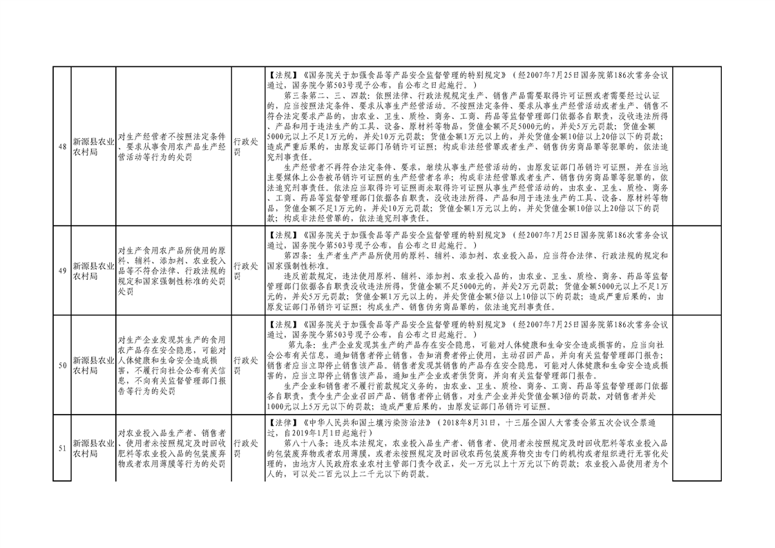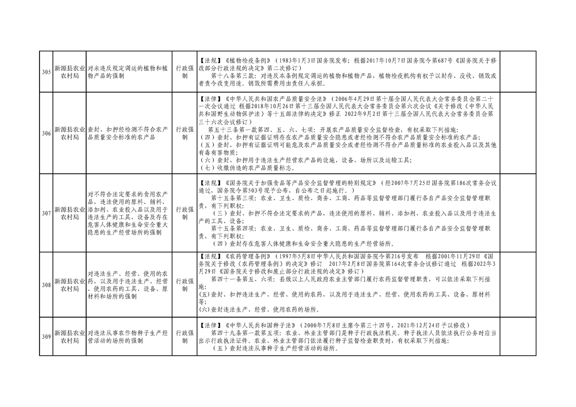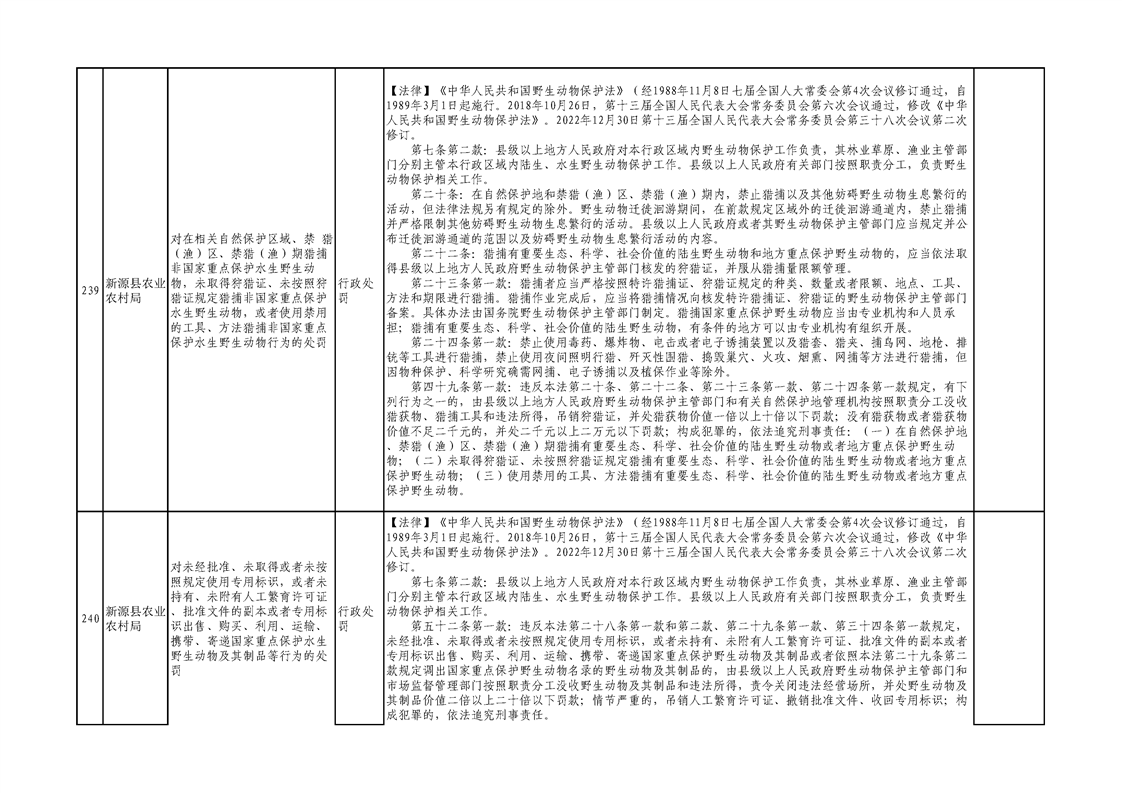 新源縣農業農村局行政執法事項清單