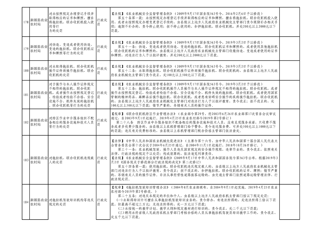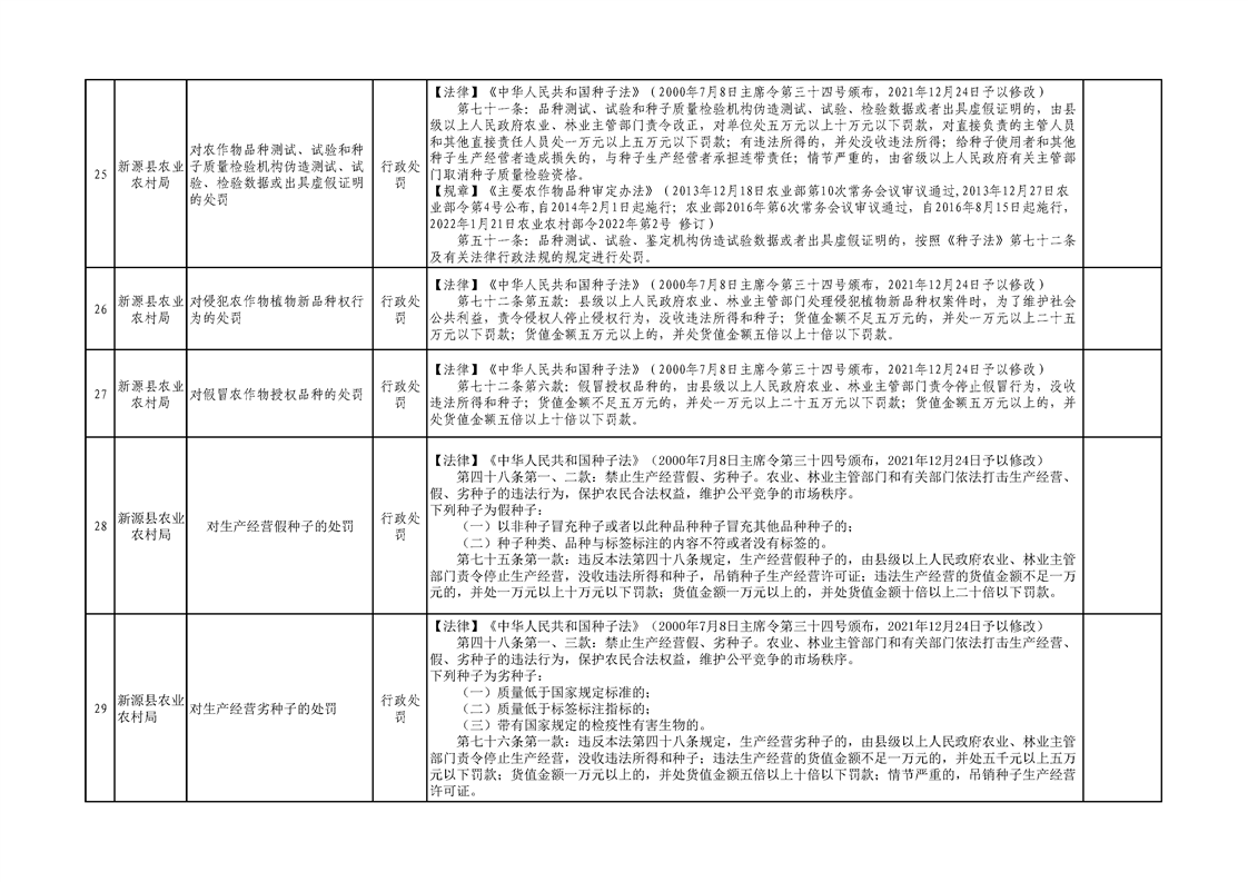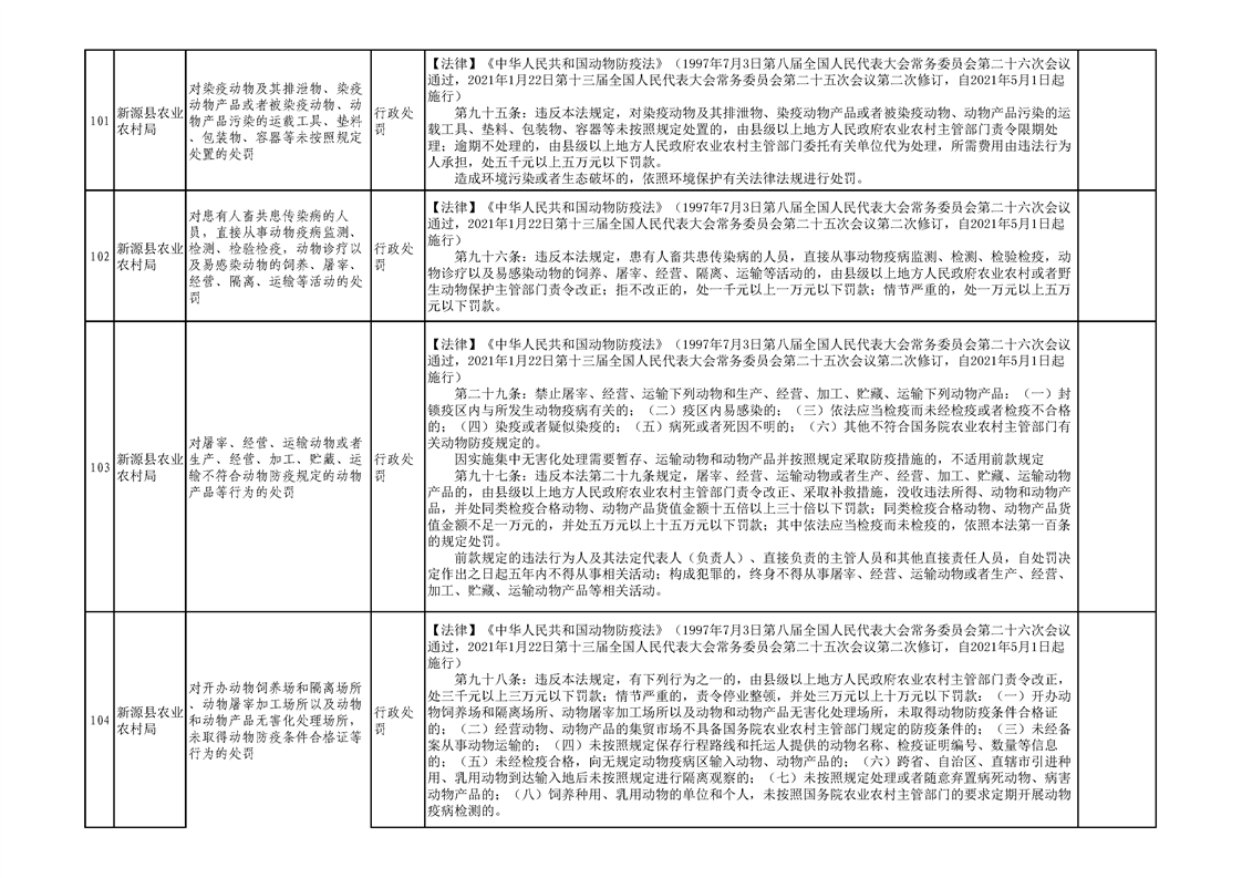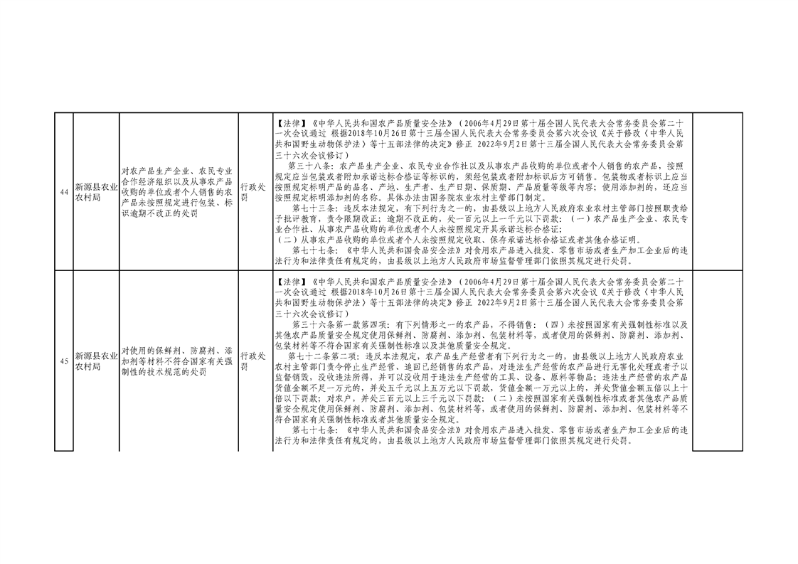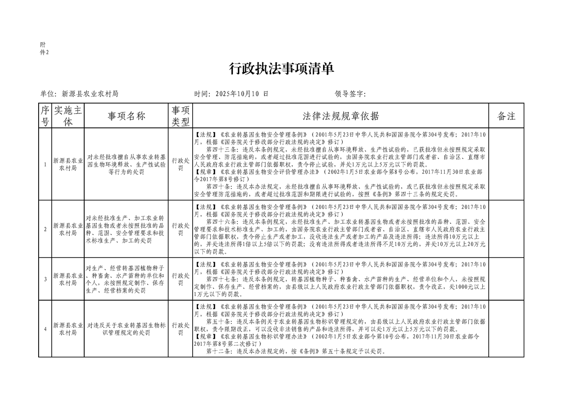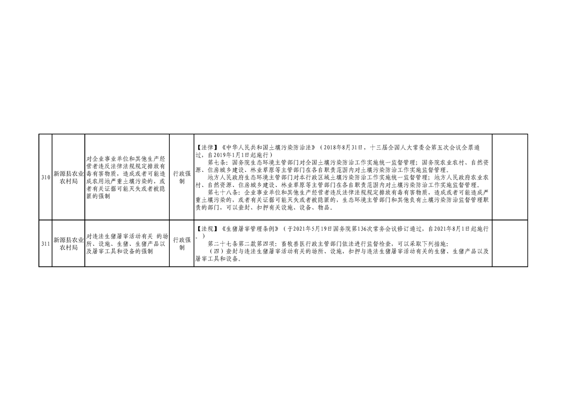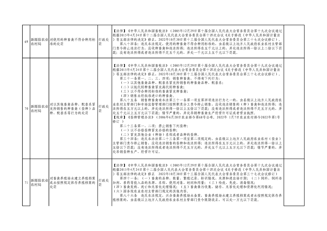 新源縣農業農村局行政執法事項清單