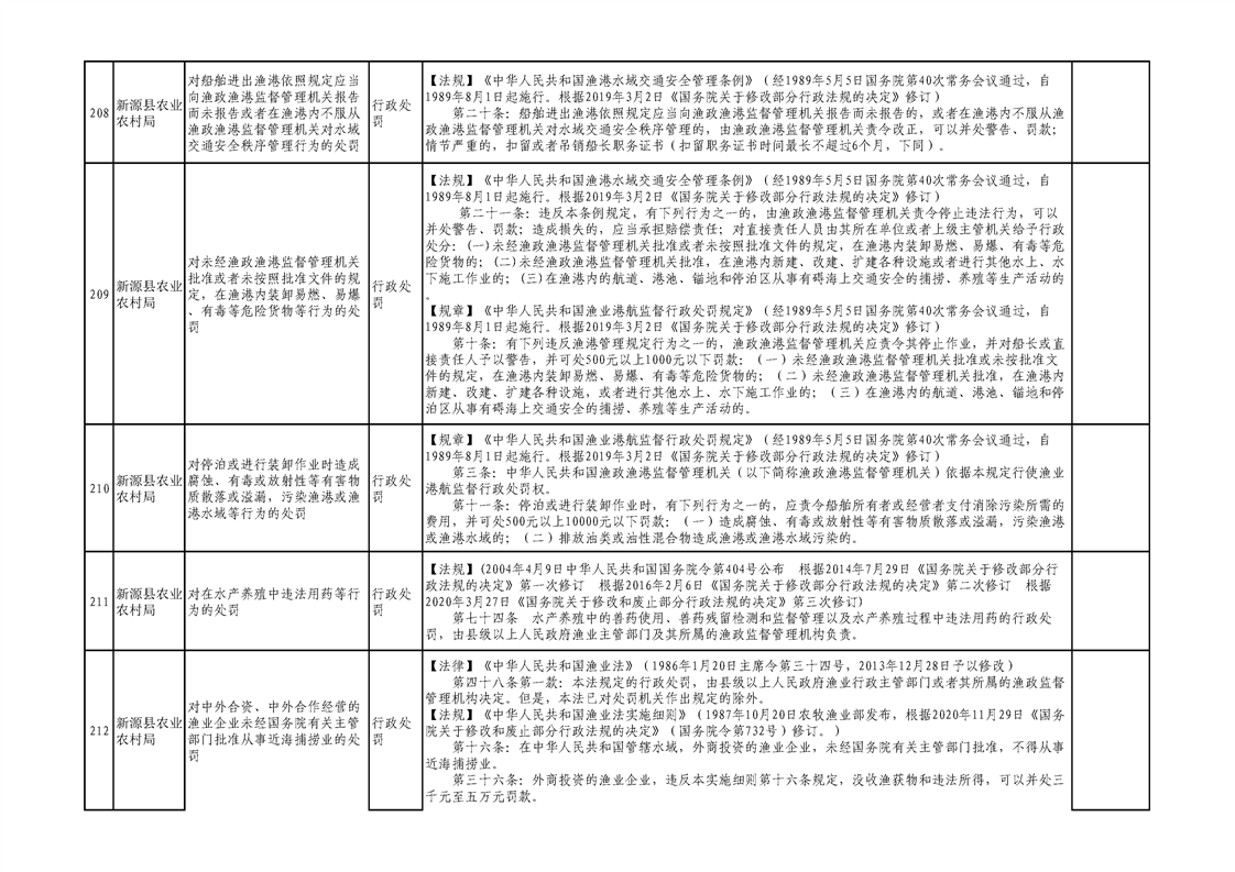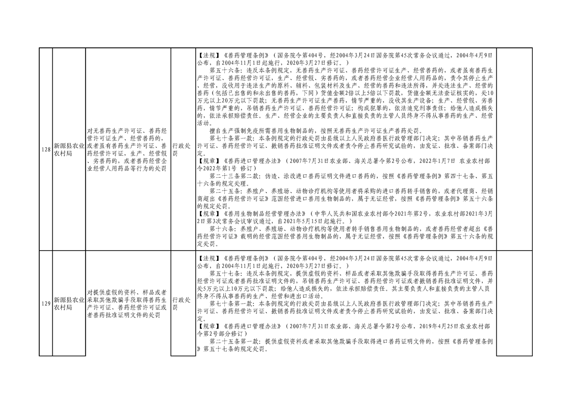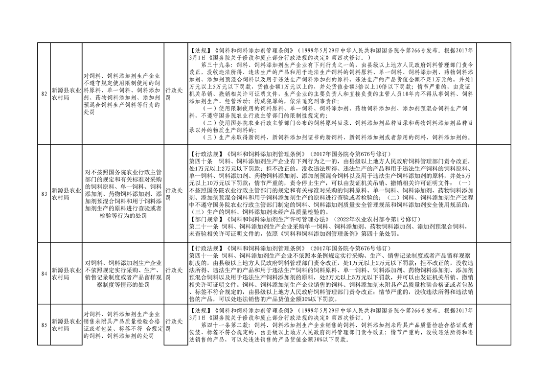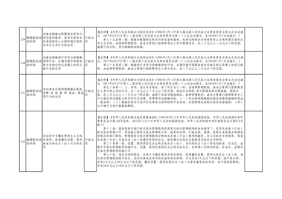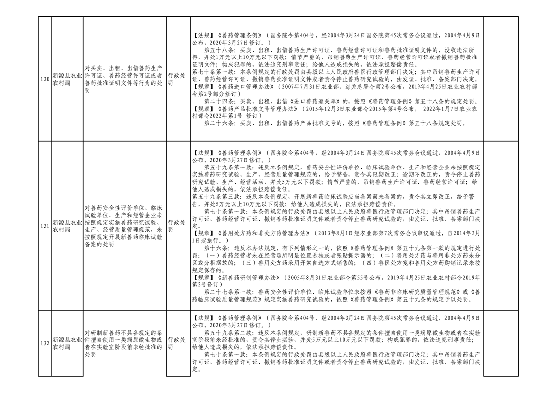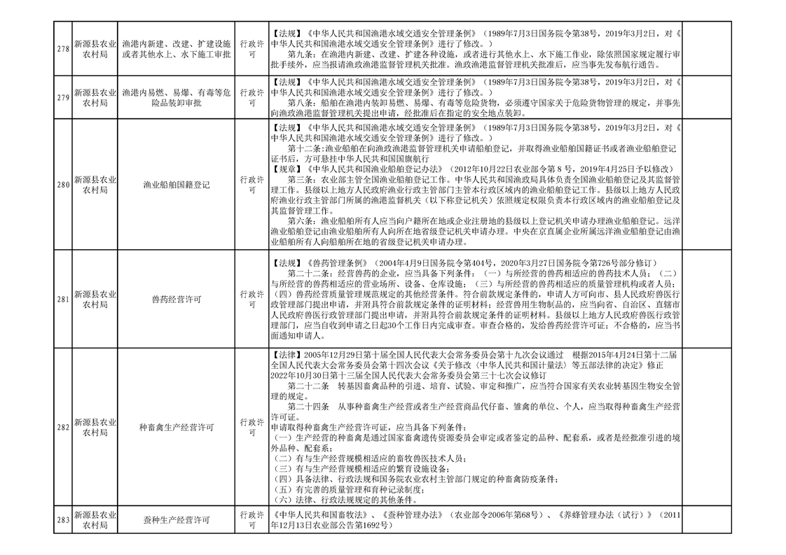 新源縣農業農村局行政執法事項清單
