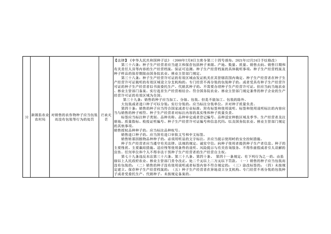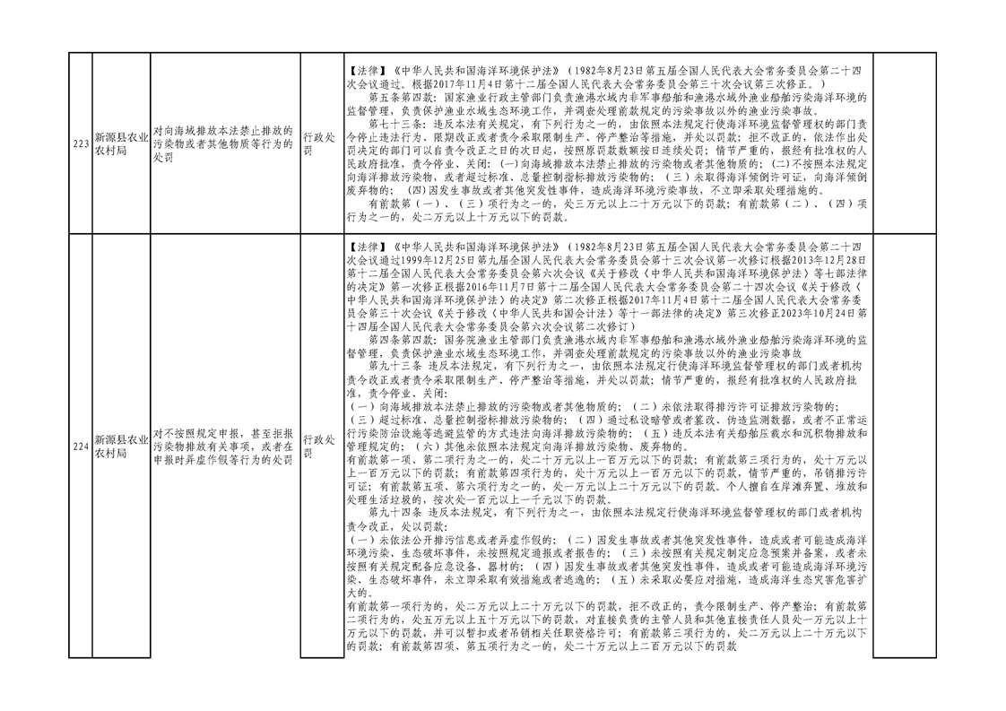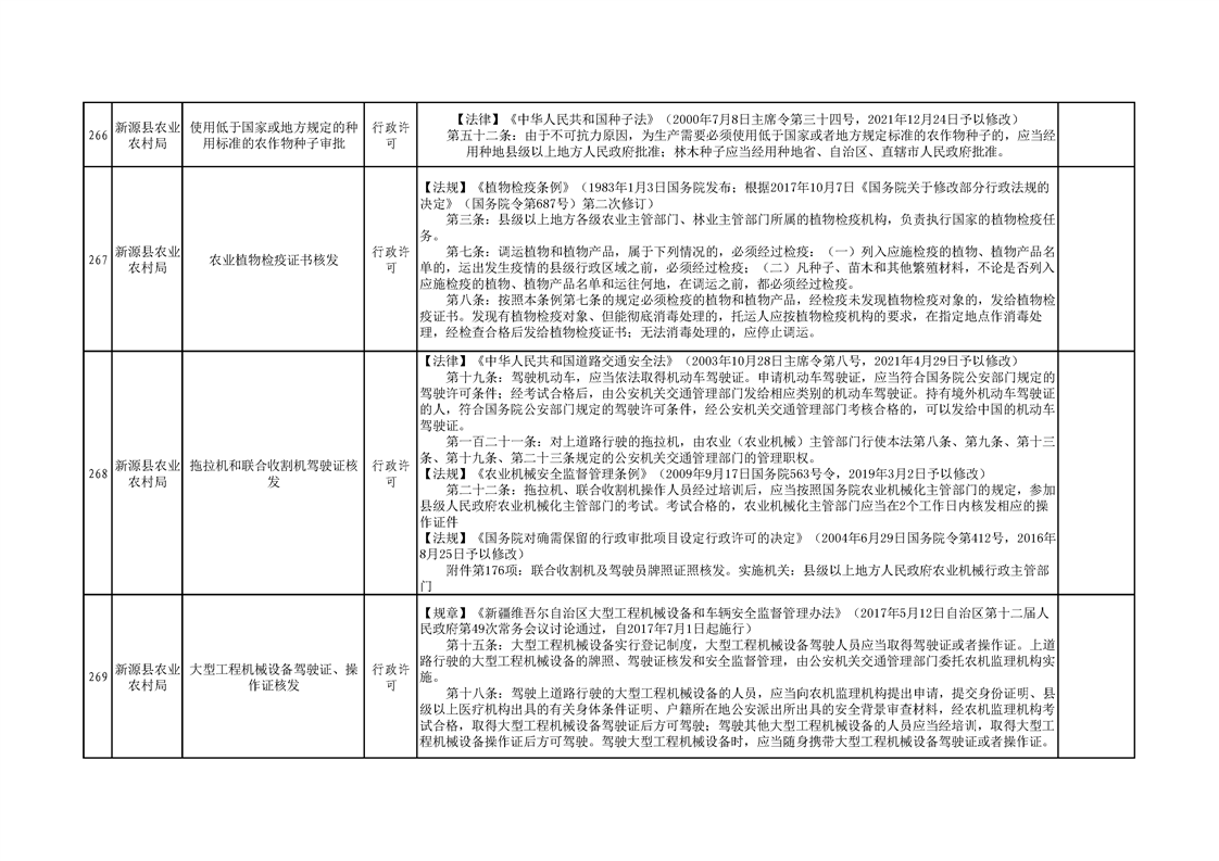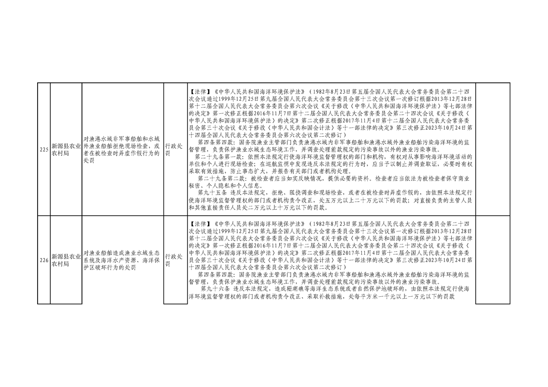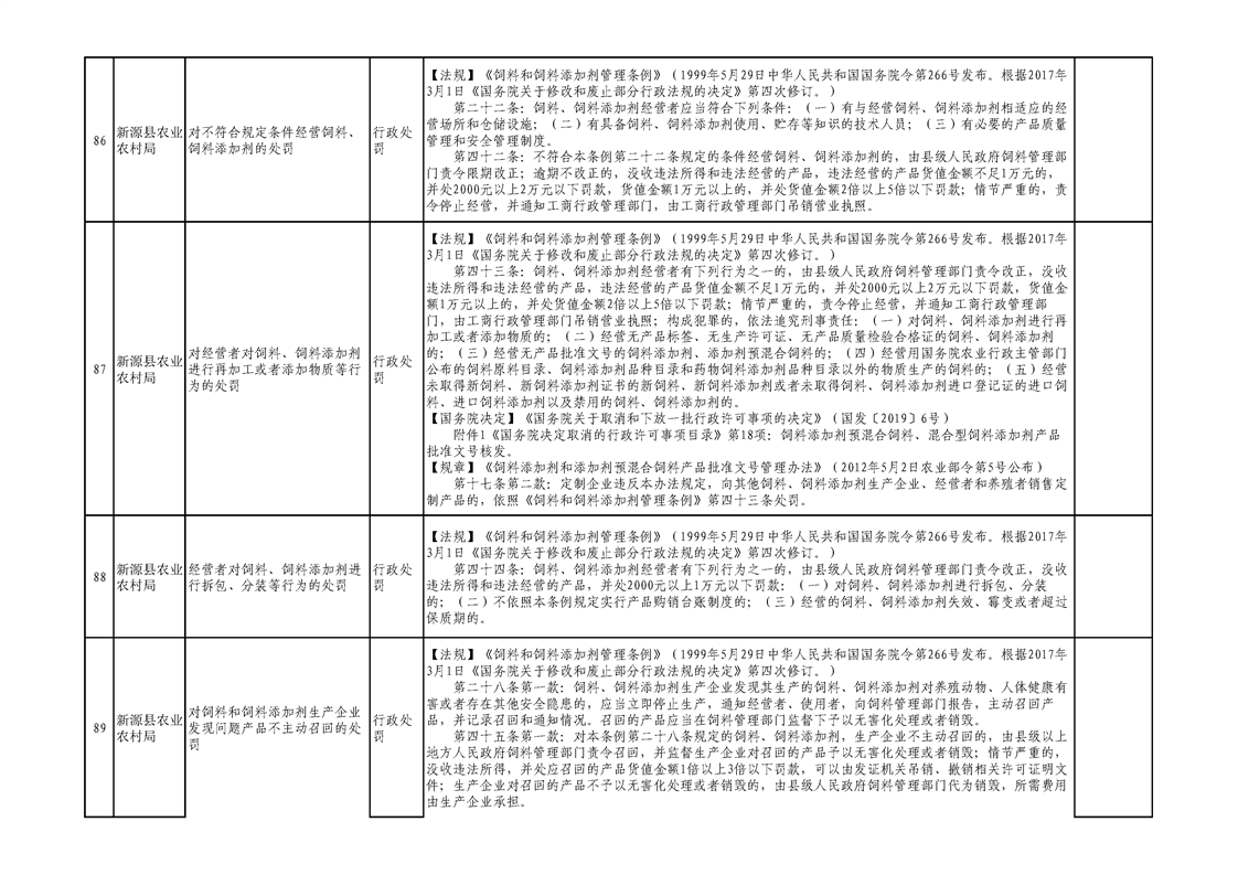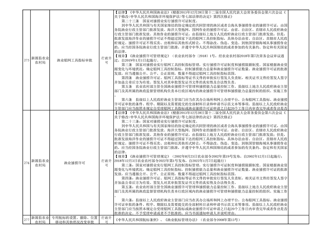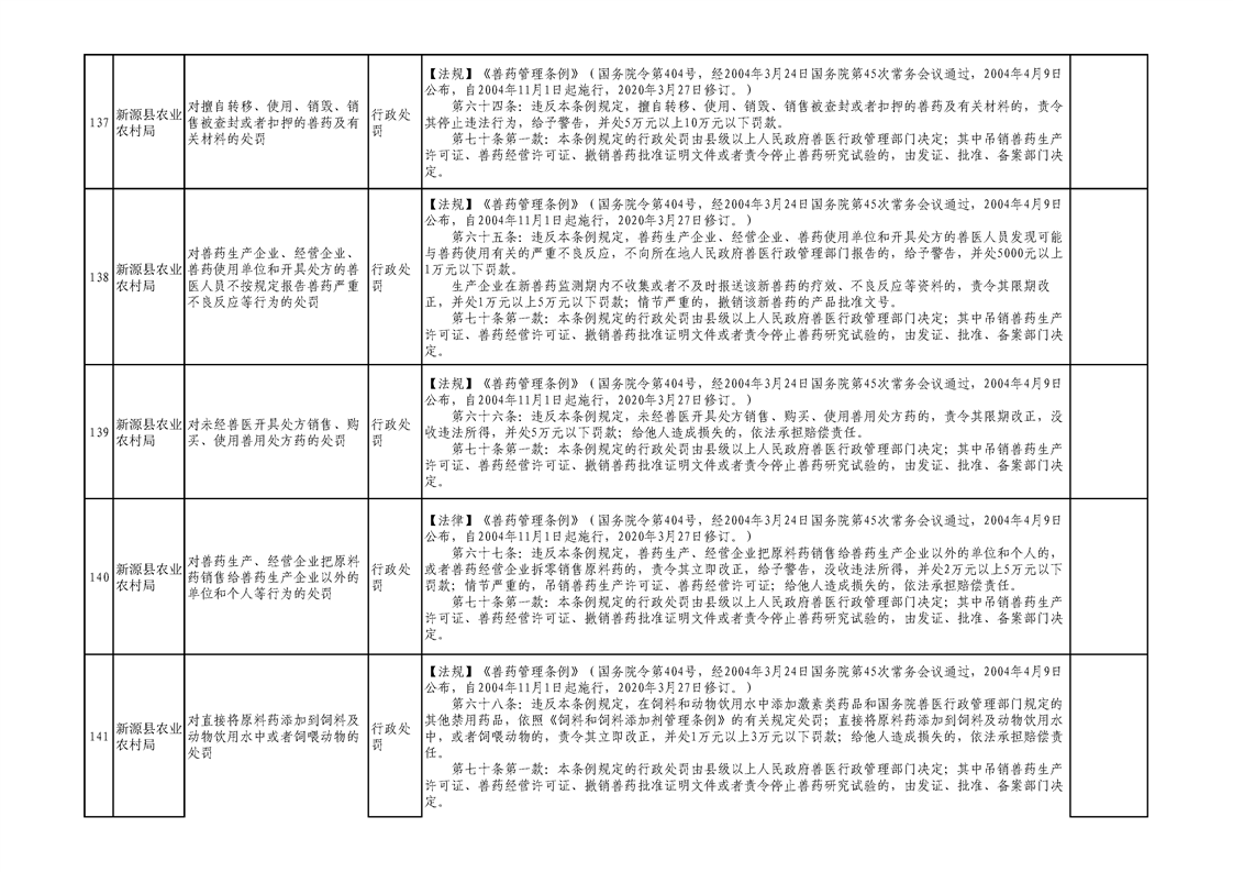 新源縣農業農村局行政執法事項清單