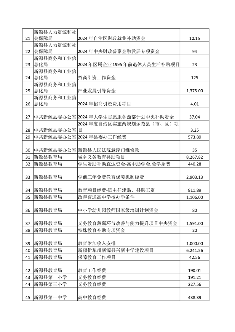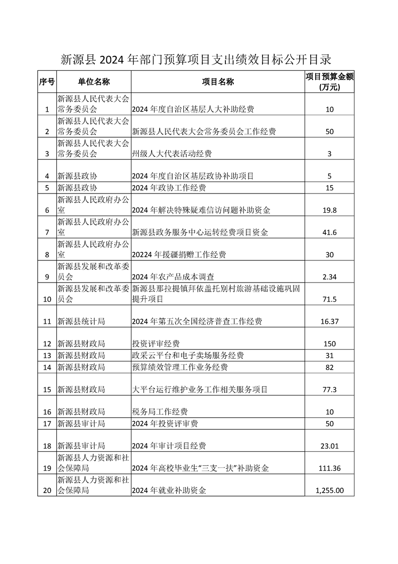 新源縣2024年部門預(yù)算項目支出績效目標(biāo)公開