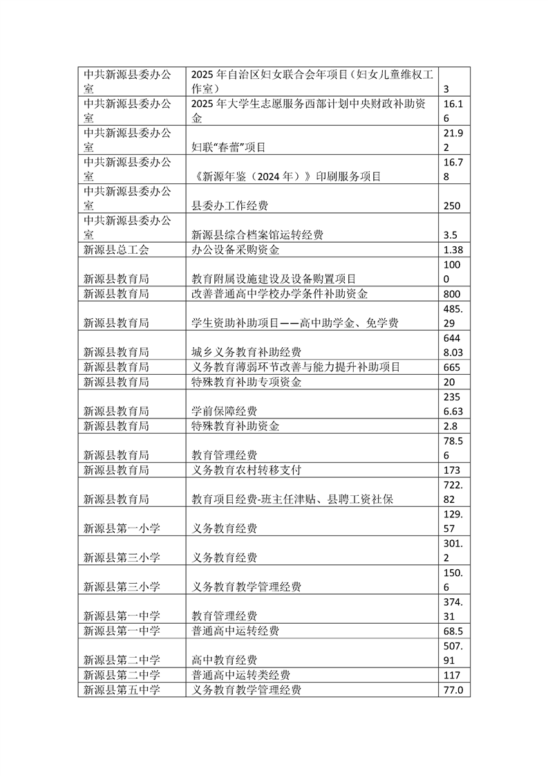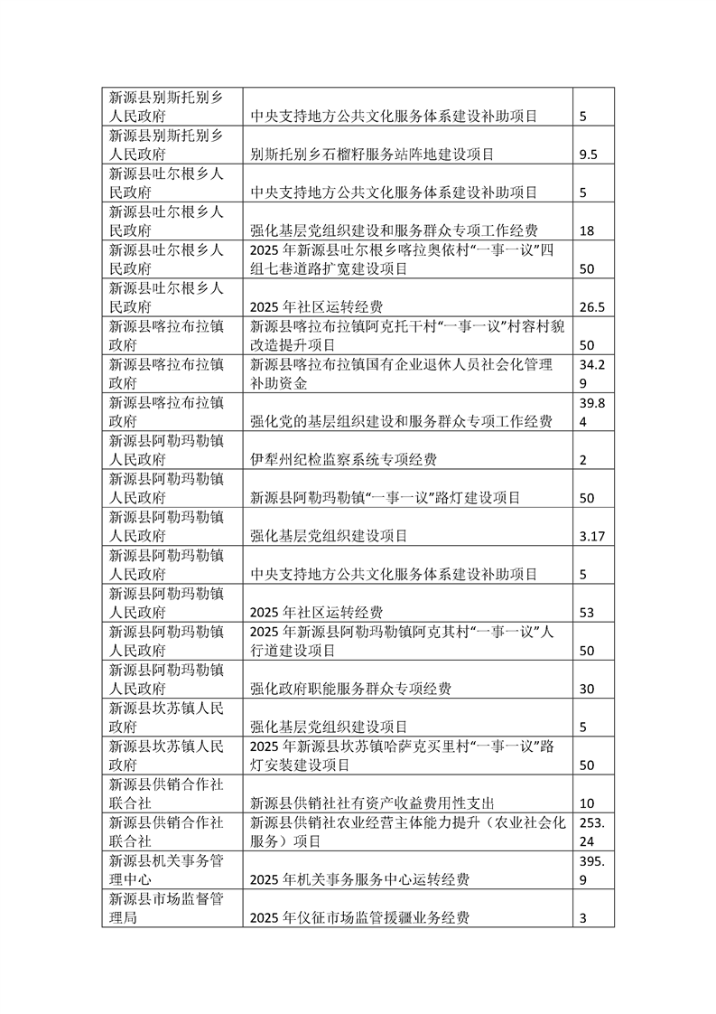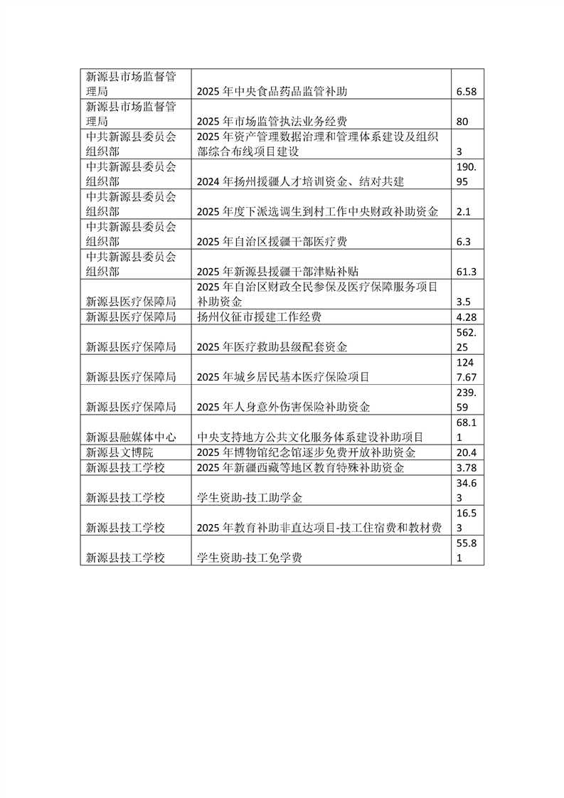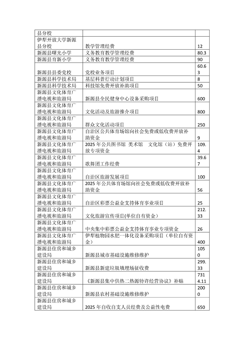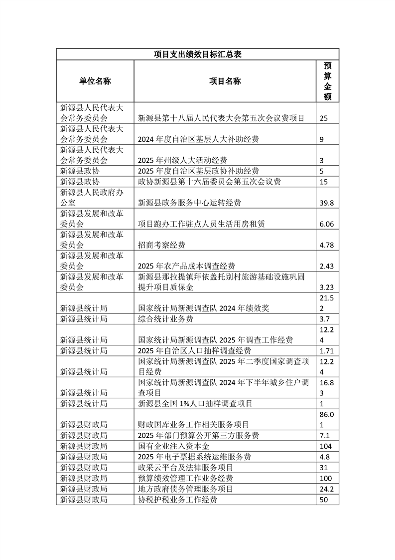 新源縣2025年部門預(yù)算項(xiàng)目支出績效目標(biāo)公開