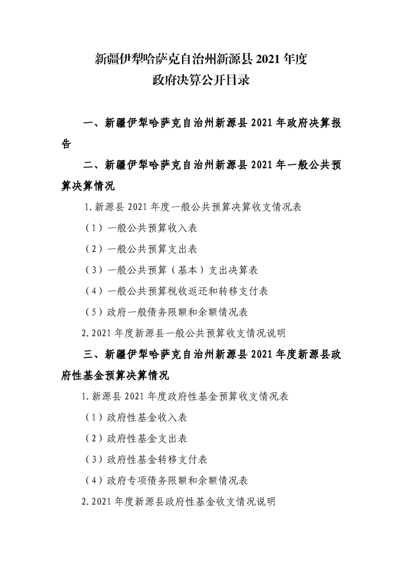 新疆伊犁哈薩克自治州新源縣2021年度政府決算公開