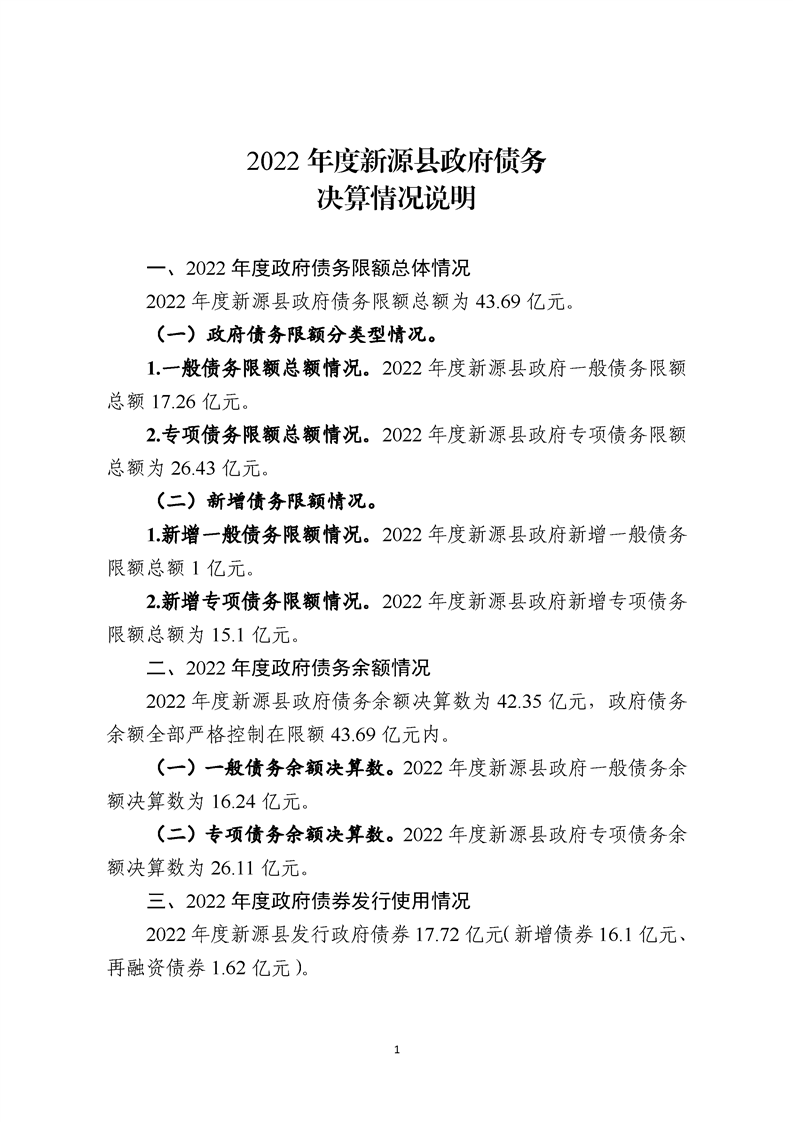 2022年度新源縣政府債務決算情況說明