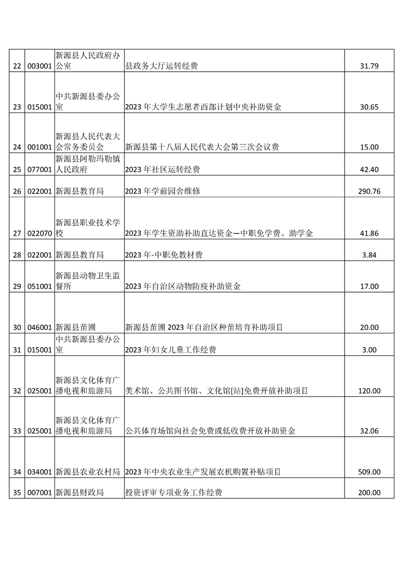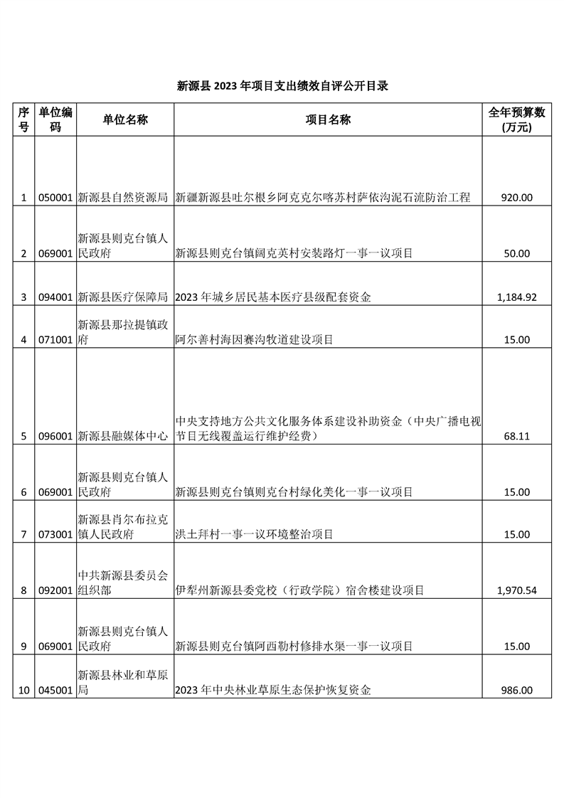 新源縣2023年項目支出績效自評公開