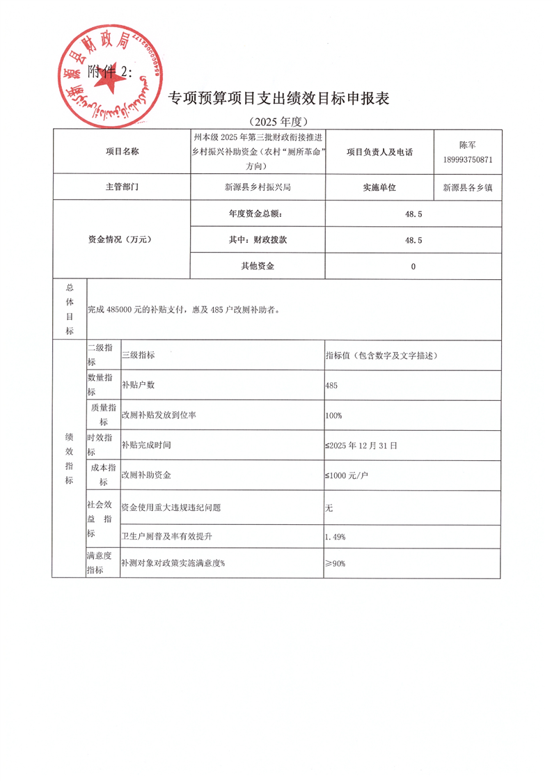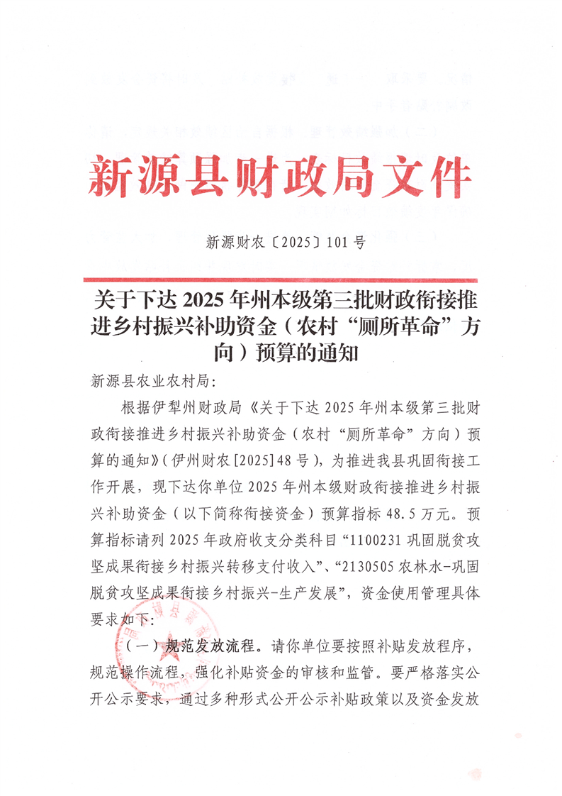 關于下達2025年州本級第三批財政銜接推進鄉村振興補助資金(農村“廁所革命”方向)預算的通知
