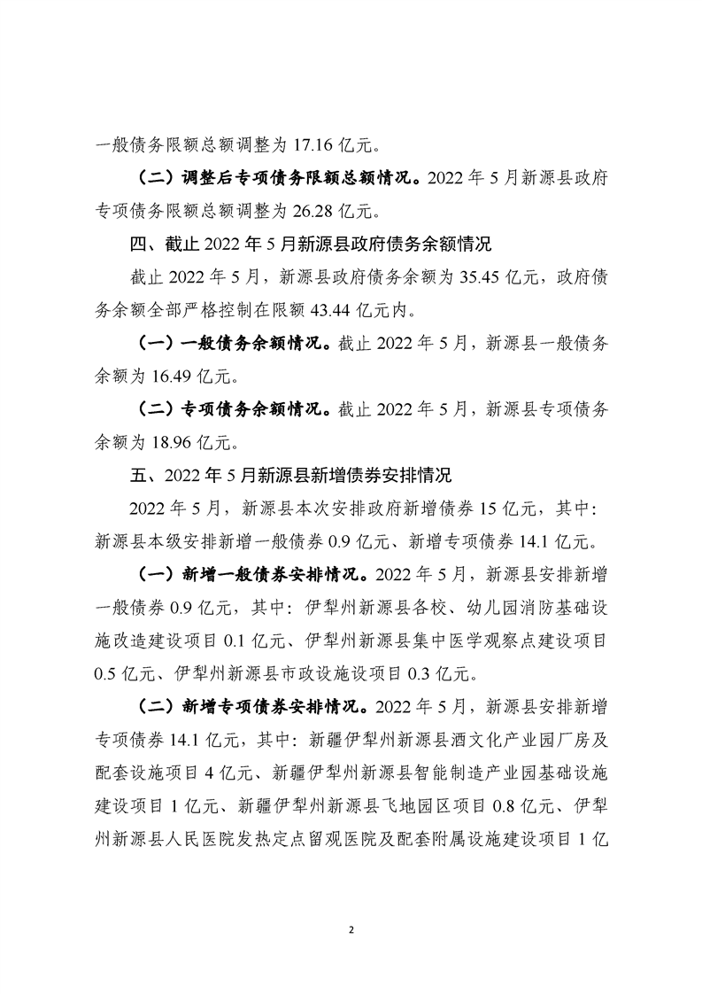 截至2022年5月新源縣政府債務預算調整情況說明及附表