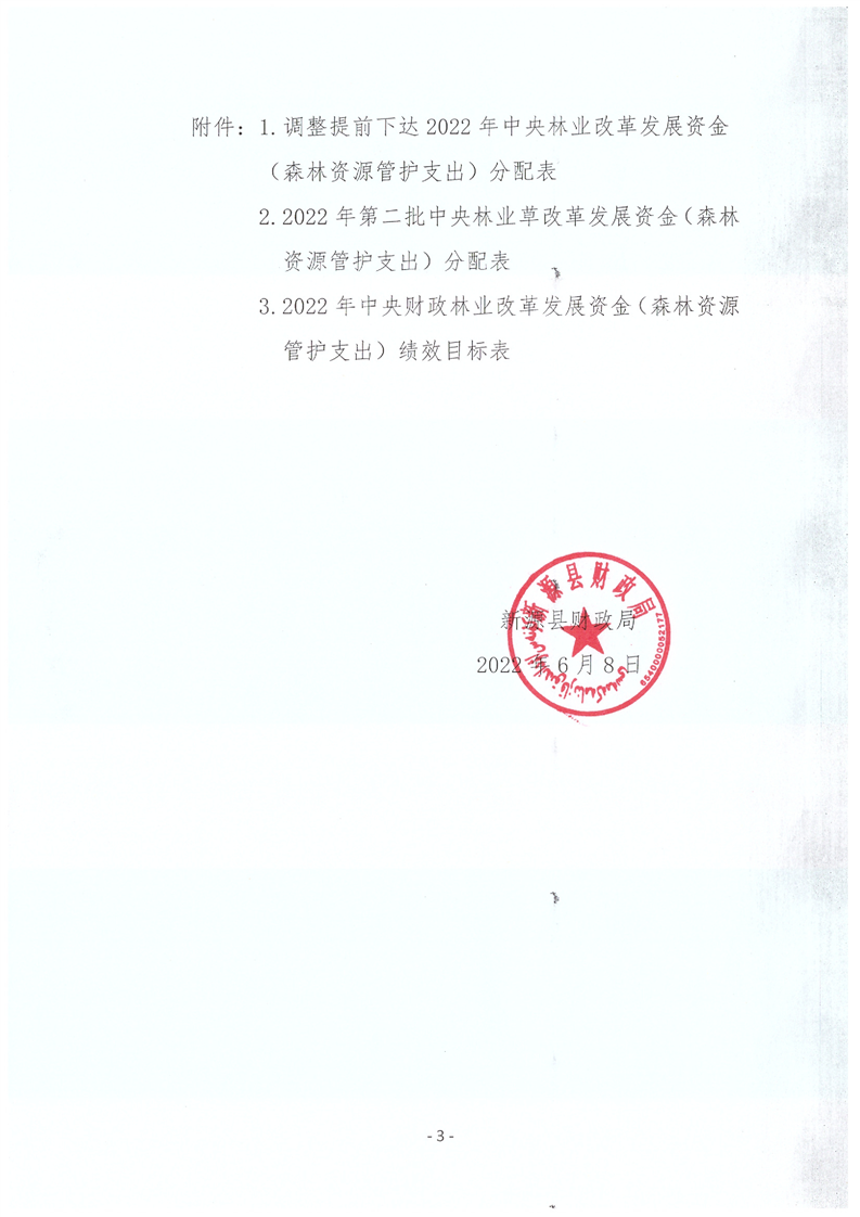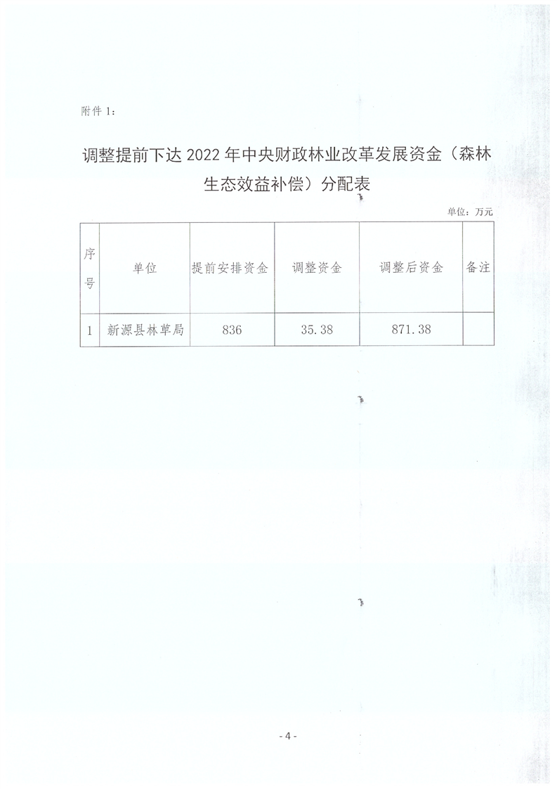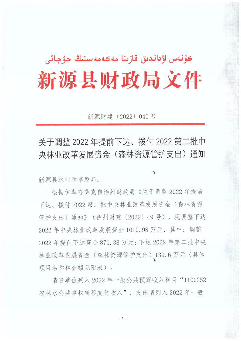 新源財建〔2022〕040號 關于調(diào)整2022年提前下達、撥付2022第二批中央林業(yè)改革發(fā)展資金(森林資源管護支出)通知