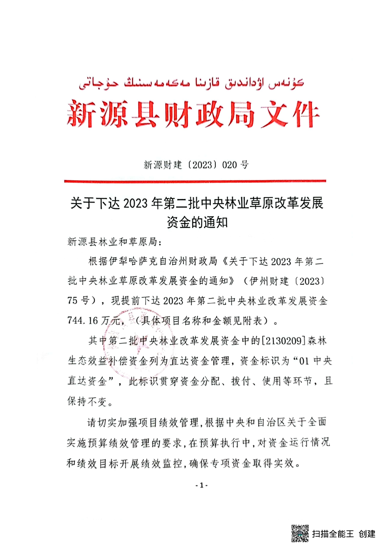 新源財建【2023】20號關于下達2023年第二批中央林業草原改革發展資金的通知