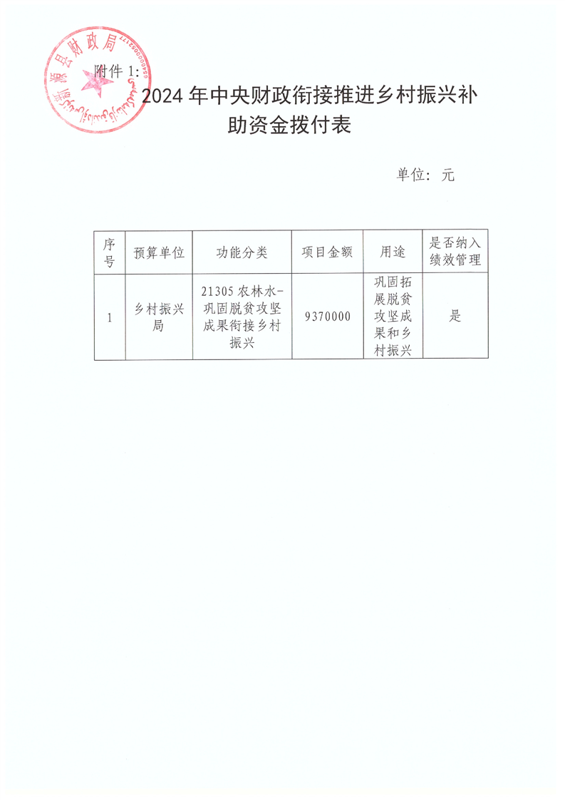 新源財農[2024]55號關于下達2024年中央財政銜接推進鄉村振興補助資金預算的通知