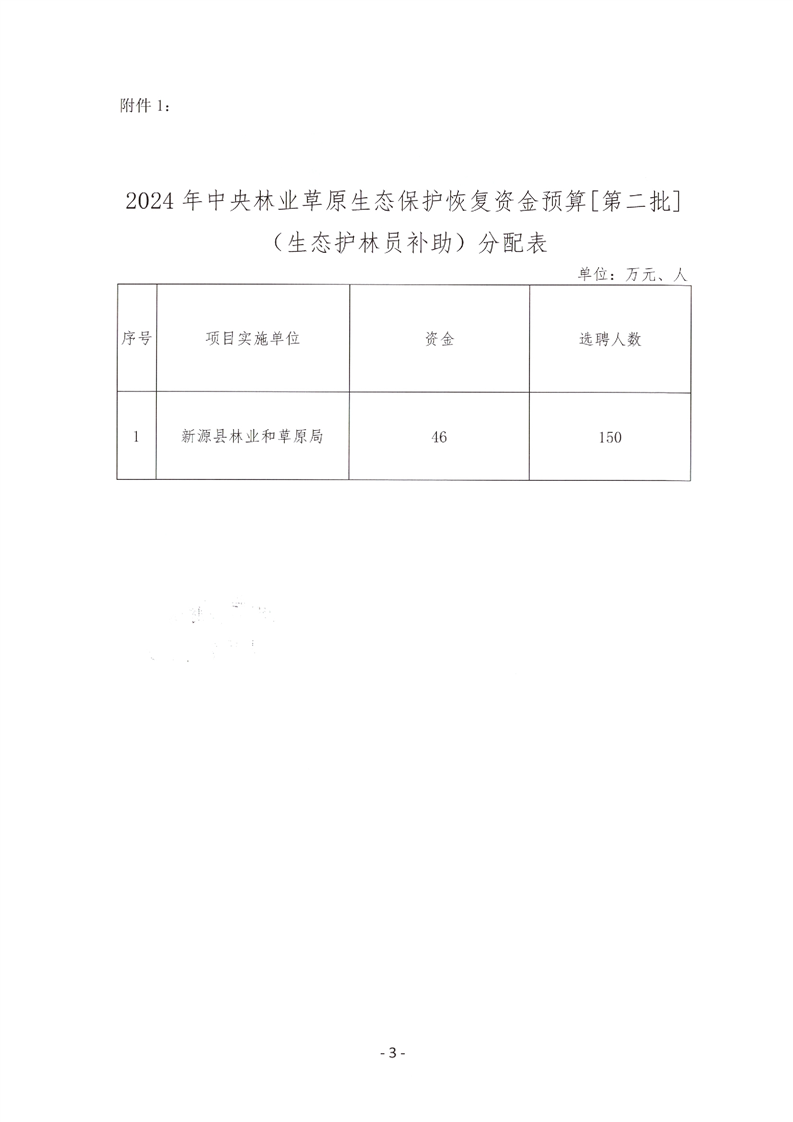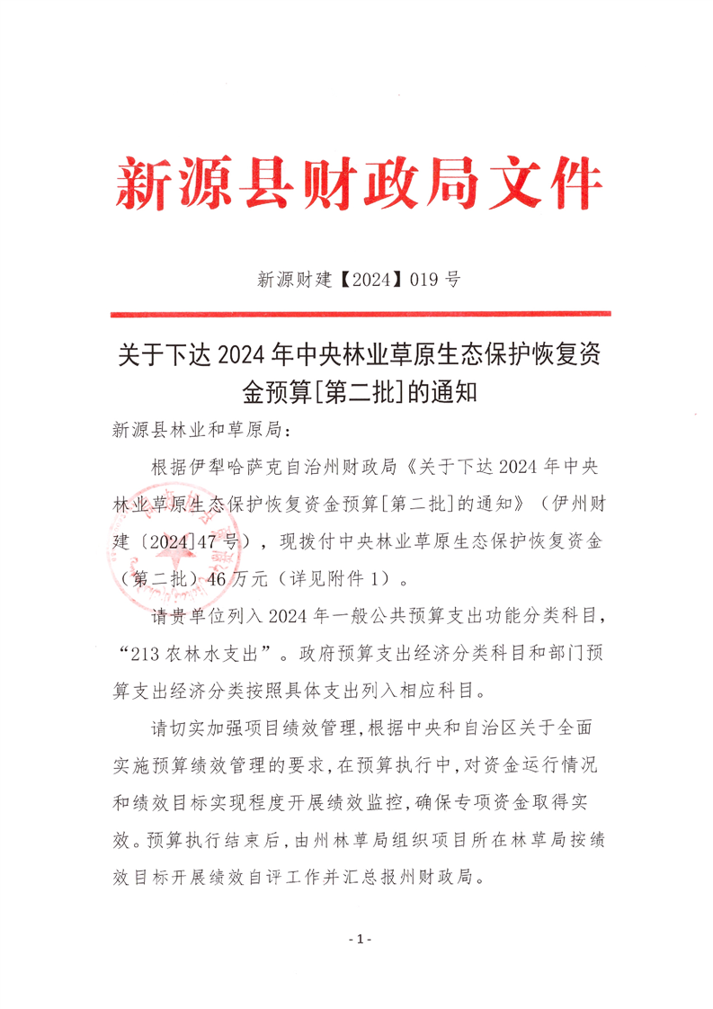 新源財建【2024】019號關于下達2024年中央林業草原生態保護恢復資金預算[第二批]的通知