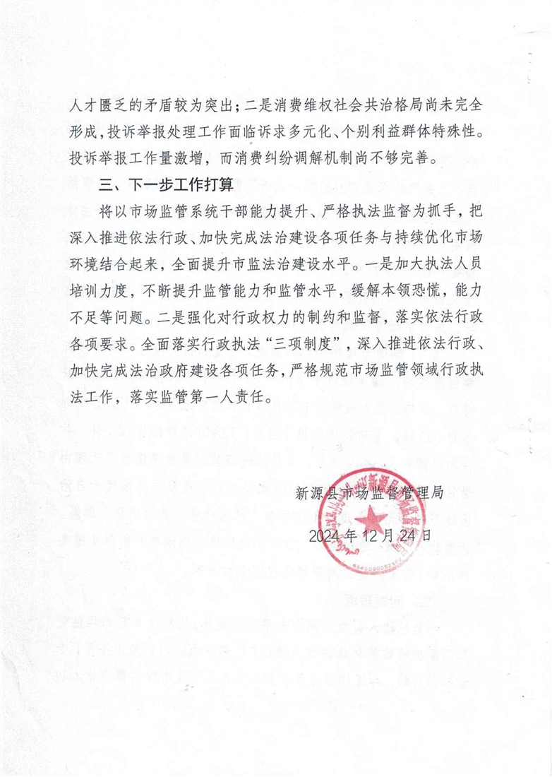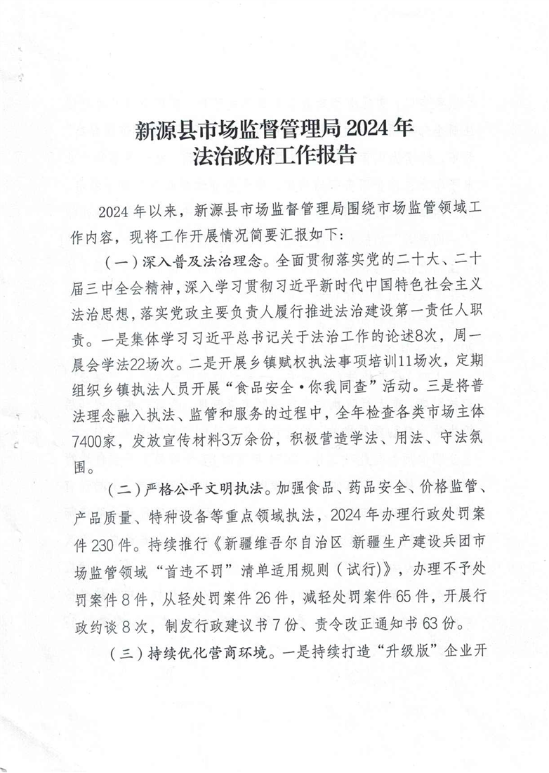 新源縣市場監督管理局2024年法治政府工作報告