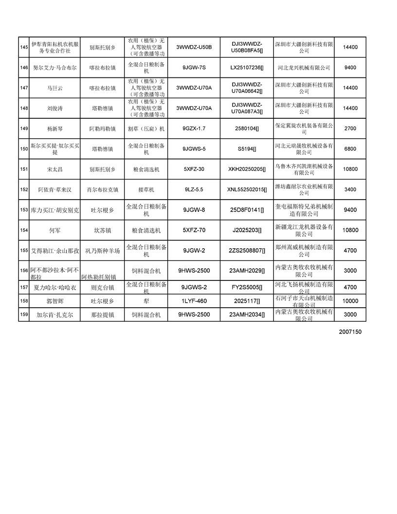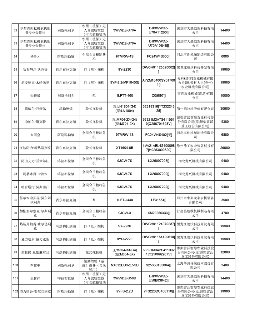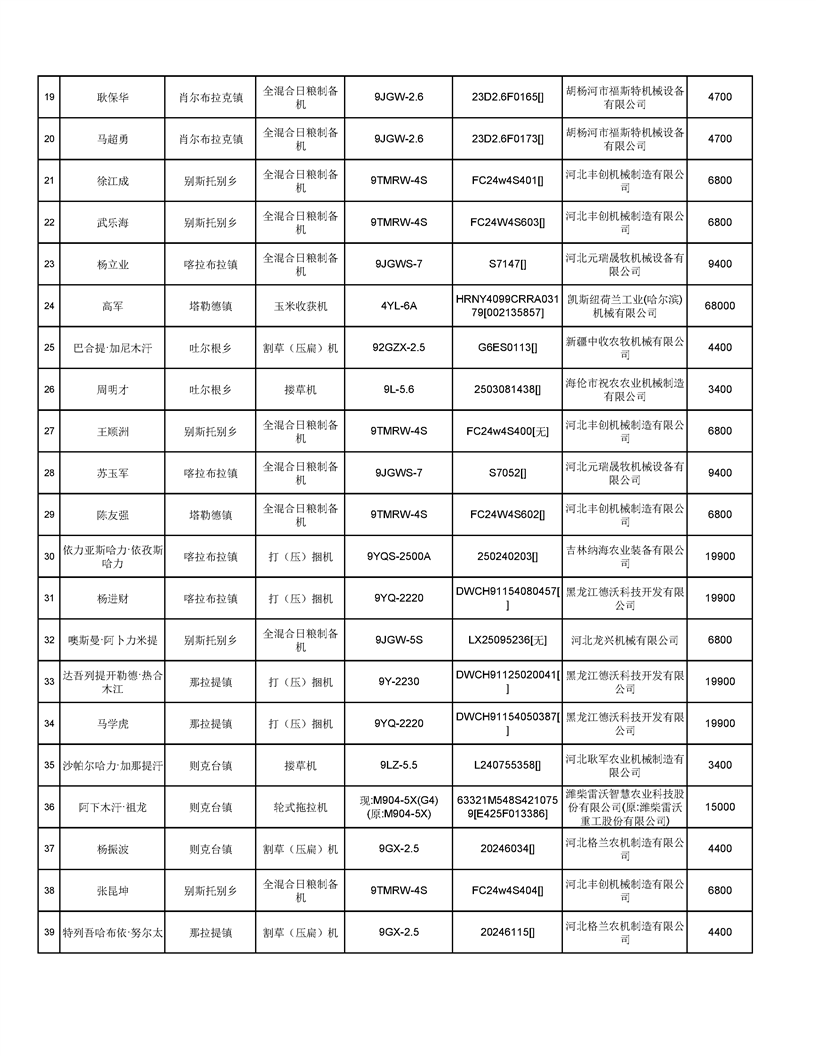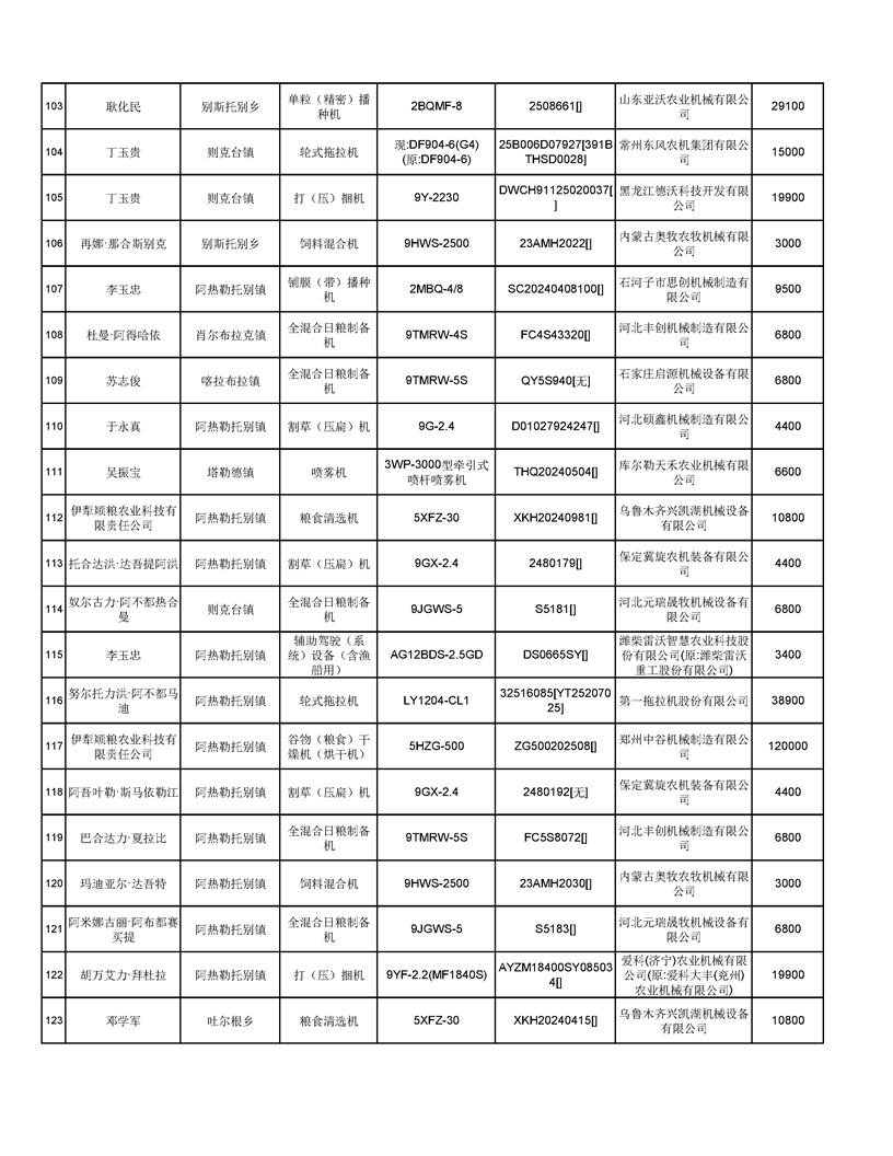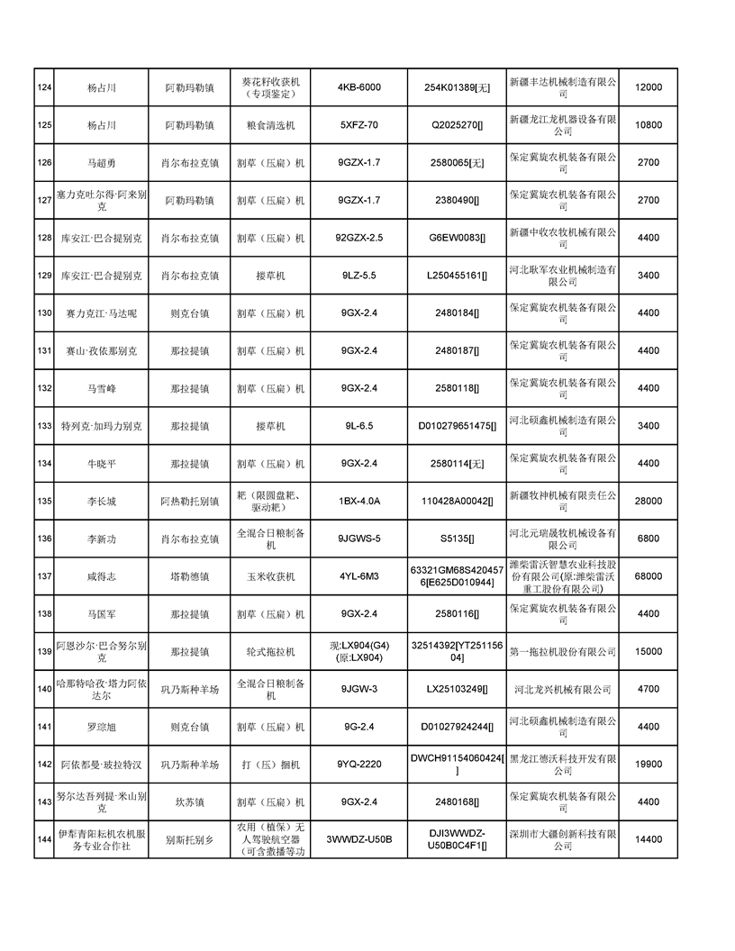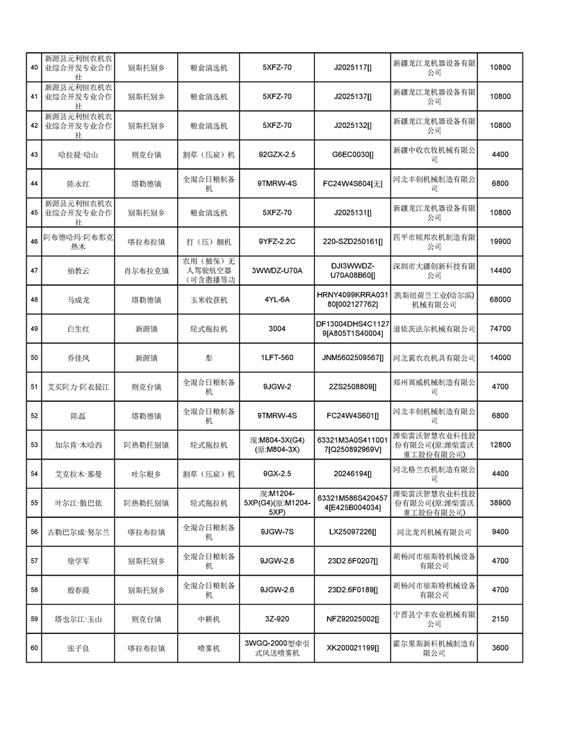 新源縣2025年自治區(qū)農(nóng)機購置補貼資金發(fā)放公示(第六批)