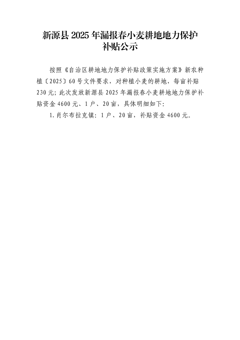 新源縣2025年漏報(bào)春小麥耕地地力保護(hù)補(bǔ)貼公示