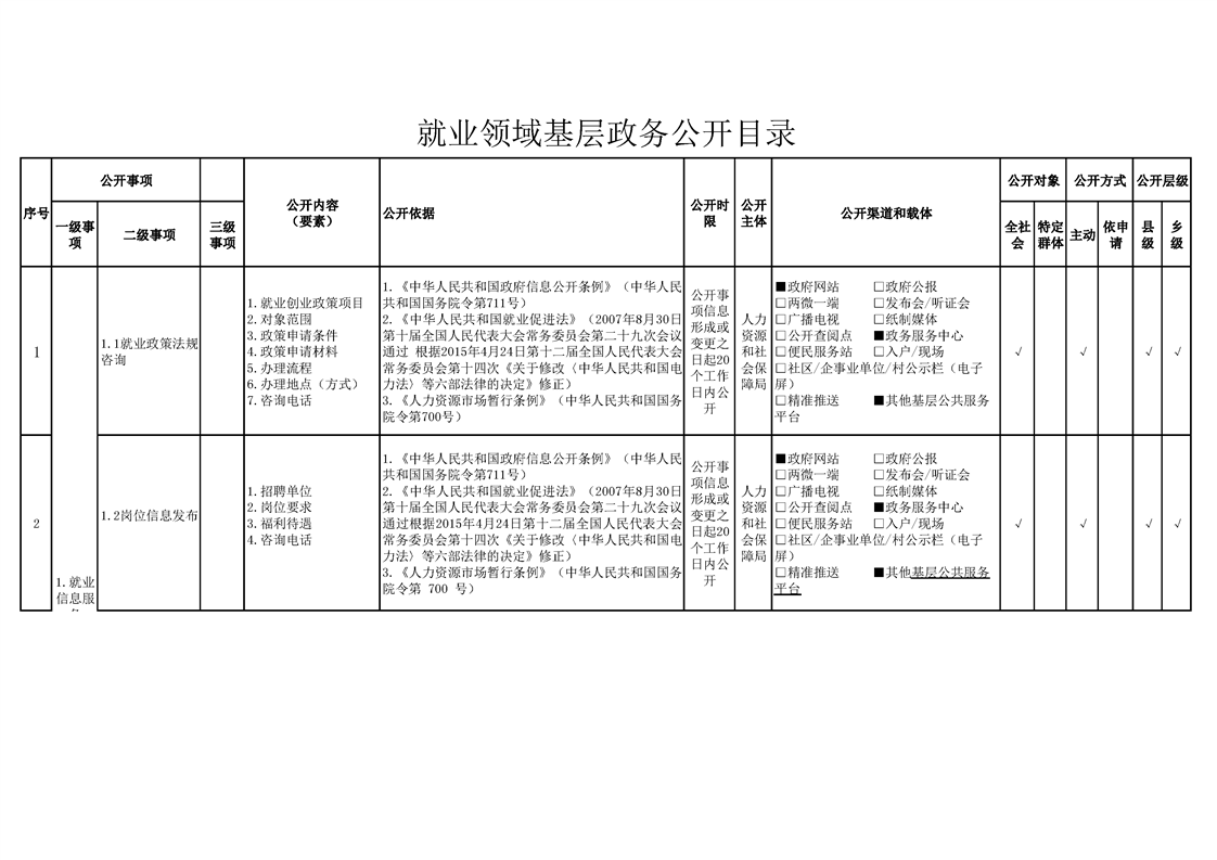 • 公開目錄: 試點領域基層政務公開標準目錄