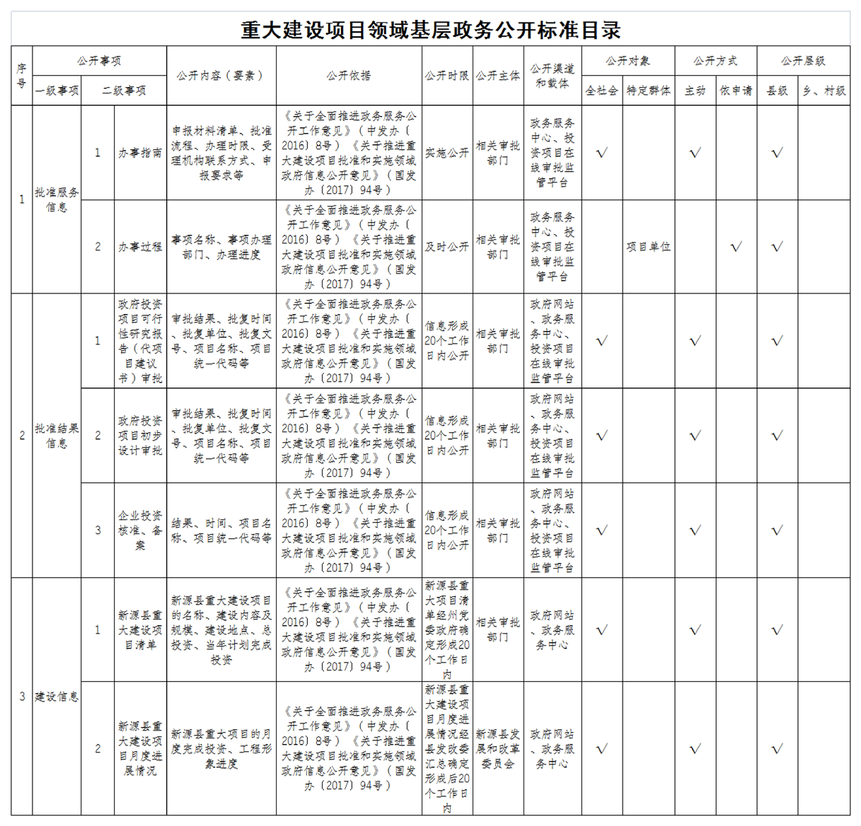 • 公開目錄: 試點領域基層政務公開標準目錄